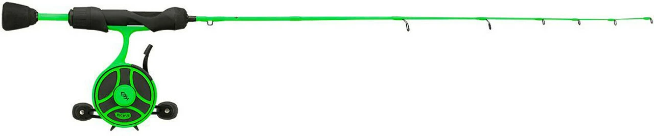 13 Fishing Radioactive Pickle Ice Combos come equipped with the 13 Fishing FreeFall ghost reel and the 13 Fishing Tickle Stick rod.