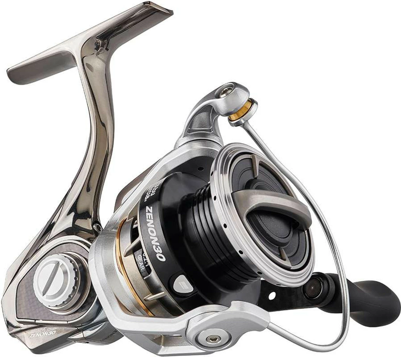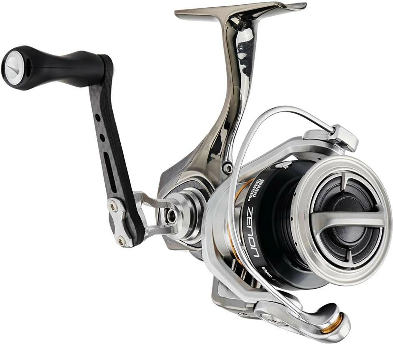 A true marvel of fishing reel engineering, the Abu Garcia Zenon Spinning Reels are the lightest and most technically superior spinning reels Abu Garcia has ever produced. This ultra-lightweight spinning reel is built on a single-piece magnesium frame that is highly flex and contortion resistant despite its feather light feel. The C-6 V-Rotor also contributes to the overall reduced weight of the reel, and also provides extremely low start up inertia for ultra-responsive reeling. Other advanced components include the ultra-light Air-Fin Spool, aircraft grade aluminum main shaft, and AMGearing system for an incredibly smooth retrieve. The Zenon is equipped with a unique and innovative drop shot sinker keeper on the opposite side of its bent carbon handle. Everything on the Zenon is tailored towards lightweight, precision performance. With some of the most advanced components and features ever seen on a spinning reel, the Zenon is a cut above the rest in the class performance optimized finesse spinning reels.