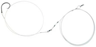 The American Fishing Wire Economy Shark Rig is professionally assembled, twisted, and crimped to take the guess work out of how to properly rig an effective leader for shark fishing. These rigs feature an extra heavy duty Mustad circle hook attached to a 4 ft. length of 0.035 in. diameter 240 lb. test single strand camo brown wire. The single strand wire is joined by a barrel swivel to an 8 ft. length of 7×7 49 strand cable with a high strength barrel swivel on the end to attach your main line. Professionally constructed with connection points you can trust, this Economy Shark Rig is ready to fish right out of the bag with minimal prep.