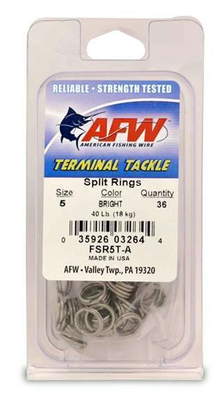 The American Fishing Wire SS Split rings are stainless steel rings made with spring temper stainless steel material. They are both rigid and strong. They can be attached quickly to other components using split ring pliers. They are made in the U.S.A.