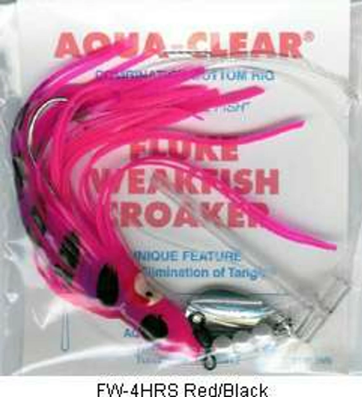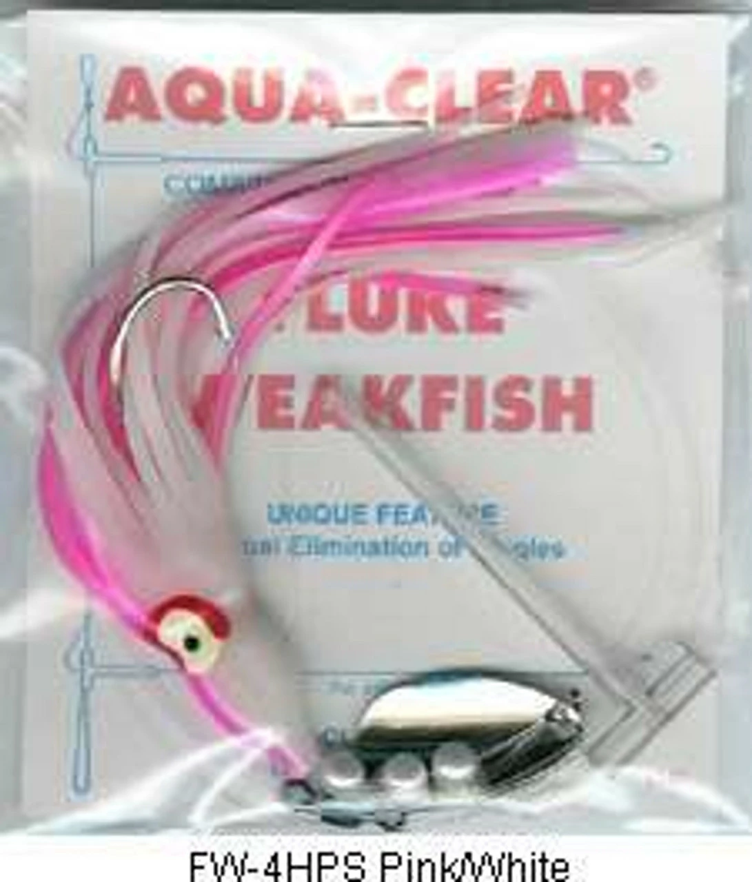Aqua-Clear Flounder/Weakfish Hoochie Squid Skirts. Flounder/Weakfish Hoochie Squid Skirt 3/0 Extra Long Hook with 4” Squid Skirt, Spinner & Pearls. With a brilliantly colored skirt swaying in the water and a durable material so as to keep intact even through harsh strikes, trust Aqua Clear.