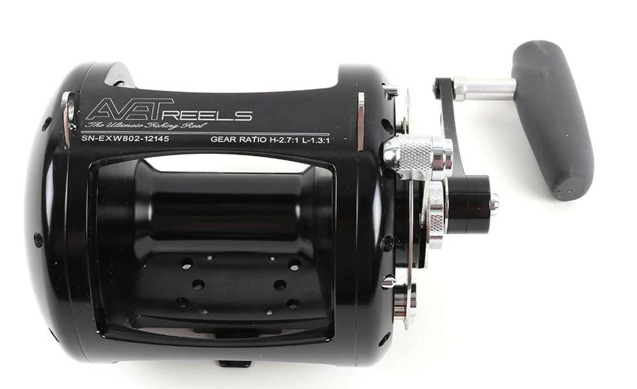 - Precision machined stainless steel gear transmissions featuring Avet’s user friendly quick shift mechanism.