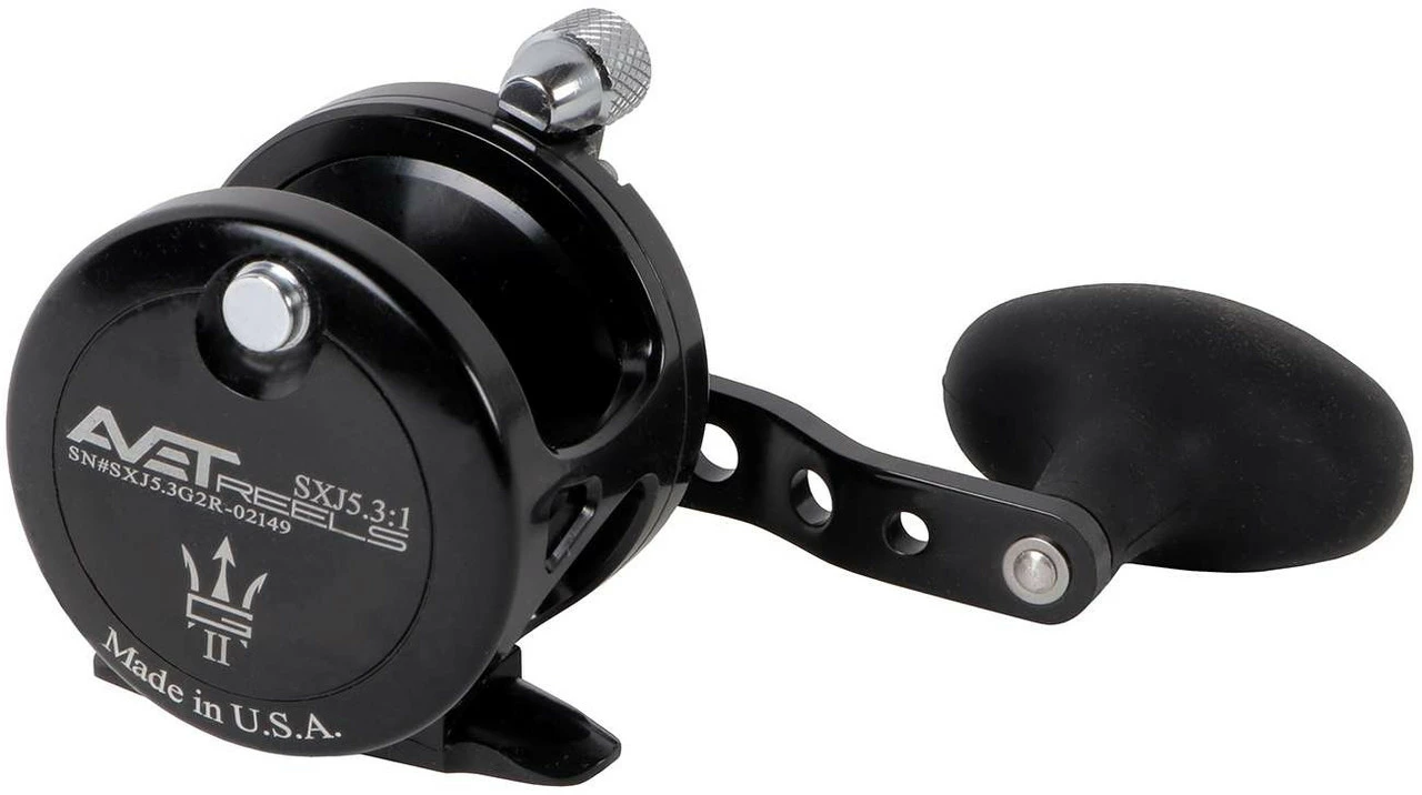 The Avet SXJ G2 5.3 Single Speed Reel is part of Avet’s Generation 2 (G2) Series, which fills in the line class gap between Avet’s original and Raptor series. Avet’s Generation 2 Reels add impressive new features, like an updated frame with new look and feel, 40% more drag output, increased line capacity, and a ratcheting Glide Plate/Lever System (Select Models Only), making the Avet SXJ G2 5.3 Single Speed Reel a great choice for your next fishing trip.