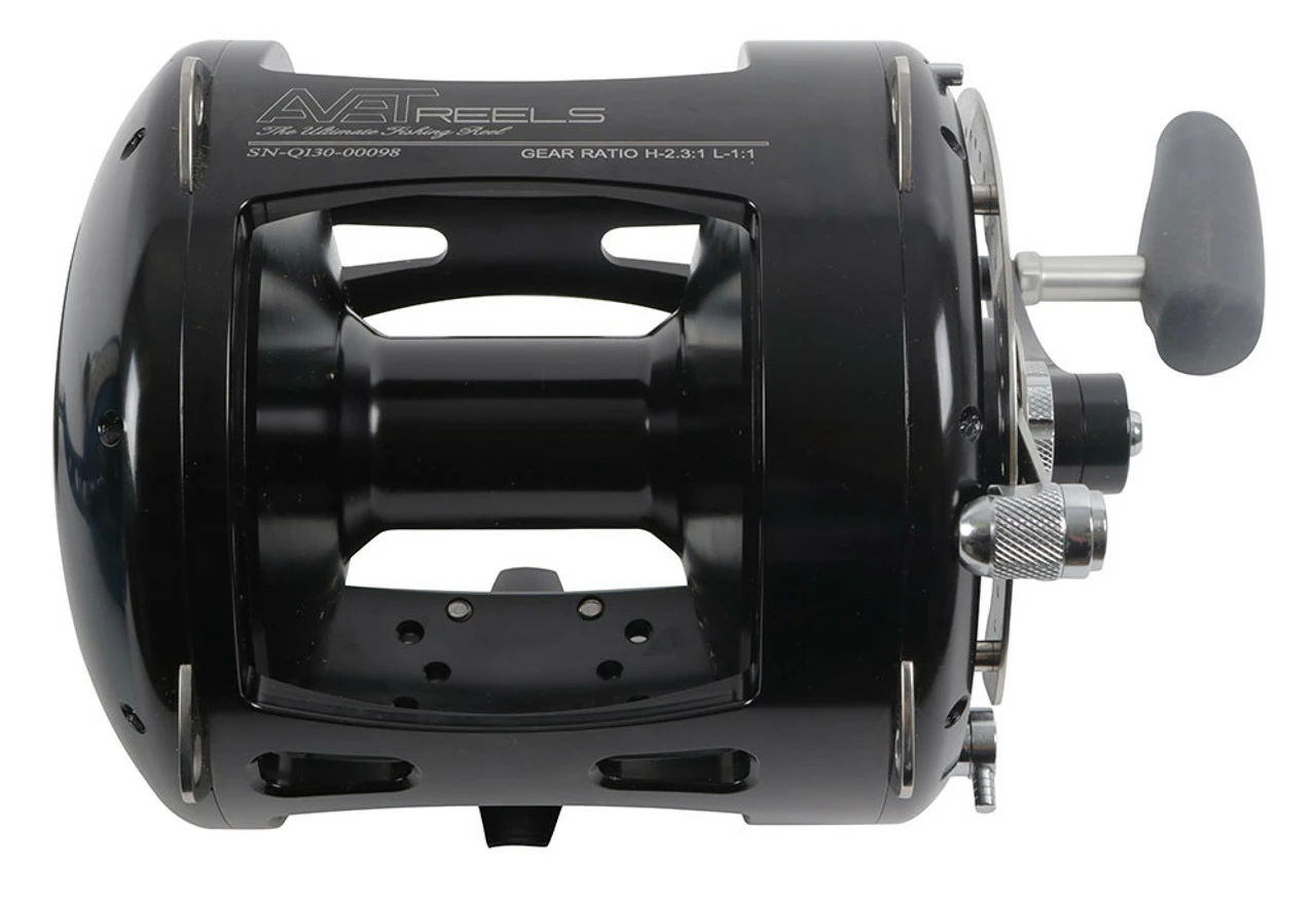 - Precision machined stainless steel gear transmissions featuring Avet’s user friendly quick shift mechanism.