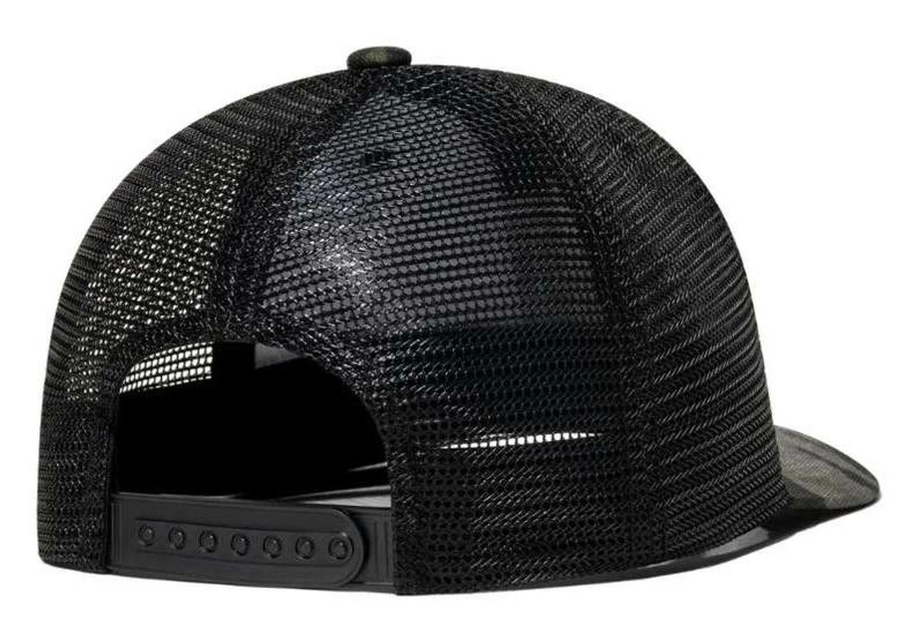 The Bajio Largemouth Patch Trucker Hat is a 6-panel hat with a woven Largemouth patch design and a semi-curved brim with a black twill underbill to decrease glare. The mesh back provides comfort and breathability.