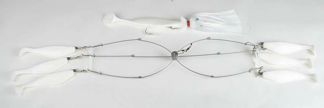 The Blue Water Candy 15in Umbrella Parachute is a 15in weighted umbrella with 4 6? shad teasers and a 4 oz. parachute trailing behind. Made for saltwater fishing.