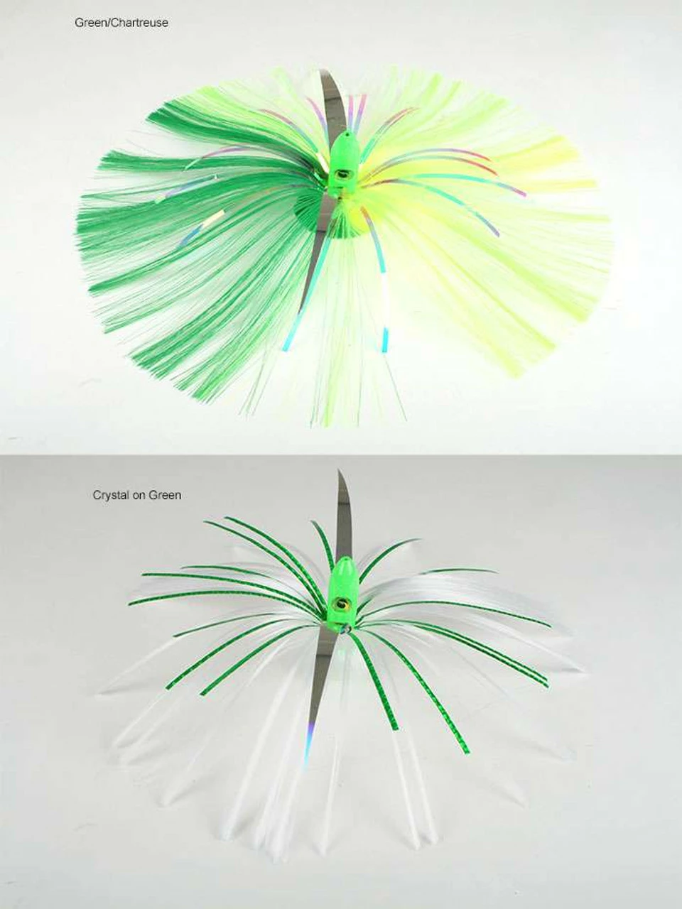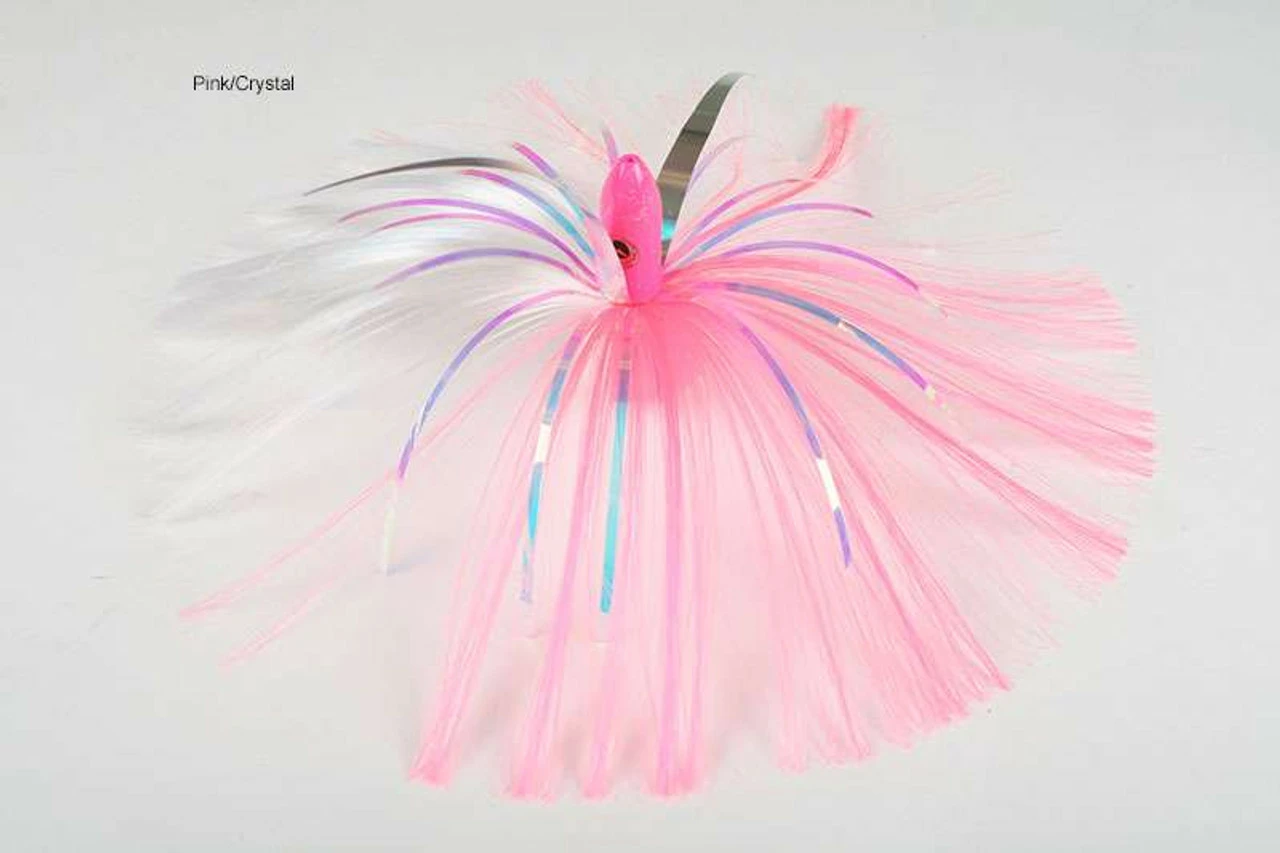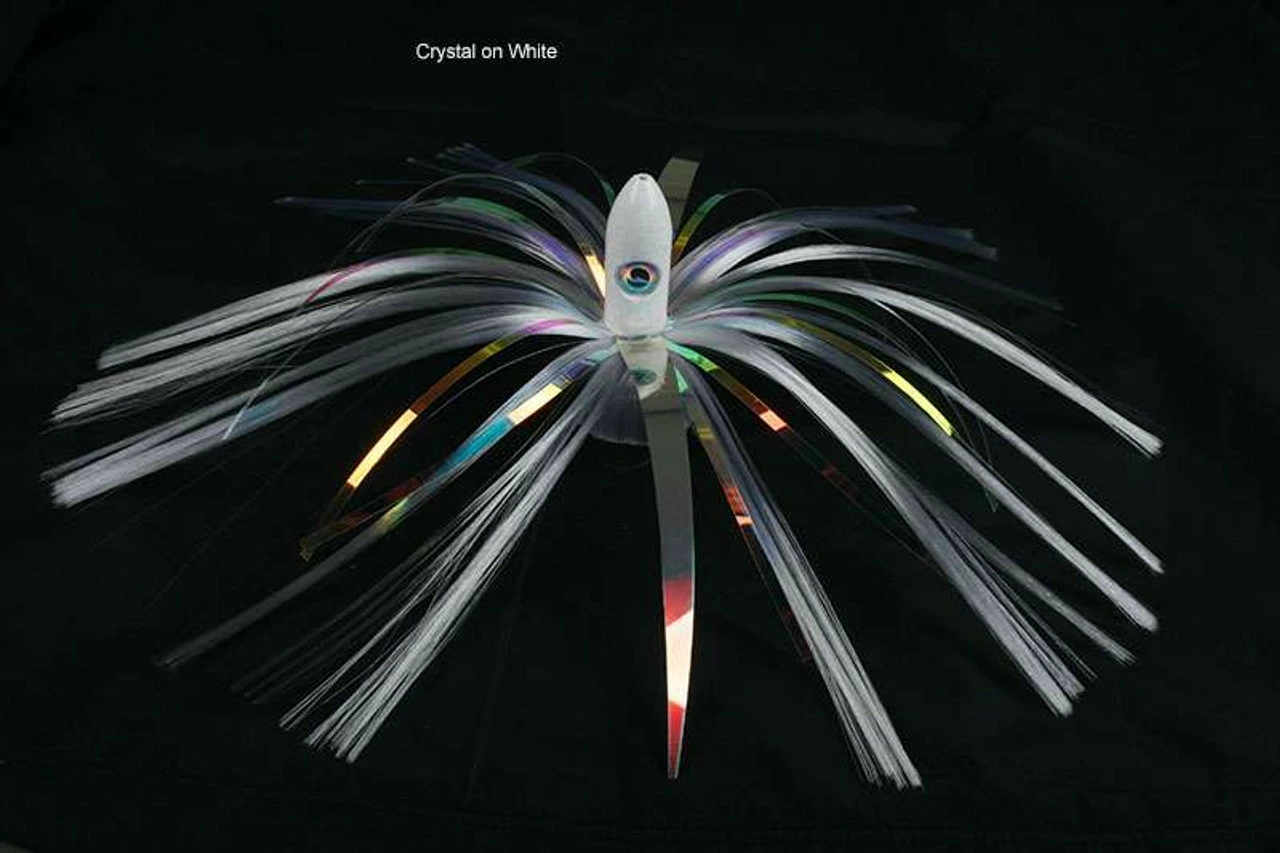 Known as a deadly offshore fish attractor, these premium skirts are the ?go to? lure of many charter captains as well as anglers all over the east coast. These JAGs come in both a 3-1/4 and 8 ounce size with powder coated bullet shaped heads with large eyes and a skirt made from hair and bling. The “Wingz” give it the look of a Flying Fish. These skirts have proven results catching monster Wahoo, Blue Fin Tuna, and other big game predators. They are heavy enough to run deep for added vertical spread and are about 9-inches in total length.