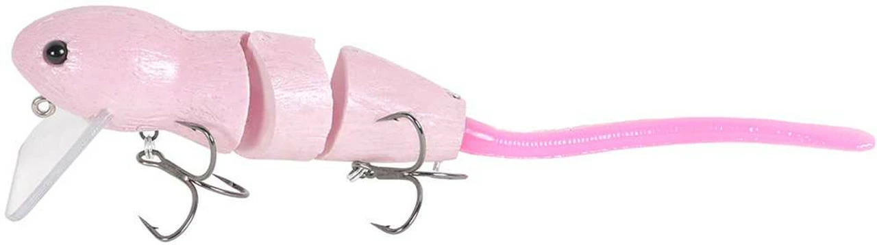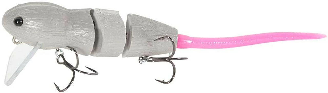 Cousin to one of the most renowned jointed swimbaits to ever hit the market, the Bull Shad Swimbaits Bull Rat is a topwater wakebait that belongs in the arsenal of any serious trophy hunter. Made by hand in Acworth Georgia by legendary guide and lure builder “Triton” Mike Bucca, the Bull Rat borrows its extremely durable construction and mesmerizing swimming action from the iconic Bull Shad. This double-jointed wakebait effectively matches the profile of a variety of rodents that frequently cruise across the water’s surface making a healthy meal for lurking predators. The Bull Rat is constructed with the highest quality materials for maximum durability, and features premium detailing like 3D eyes and an easily replaceable floating worm tail that accentuates the bait’s seductive swimming motion. Equipped with top-of-the-line hardware, the Bull Shad comes with Mustad 2x Short Grip Treble Hooks on heavy duty split rings. The hooks come attached to swiveling hook hangers that give the hooks an increased range of motion to help prevent your trophy catch from gaining leverage and dislodging the hooks.
