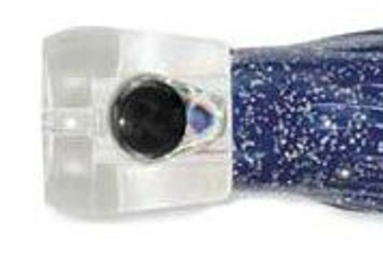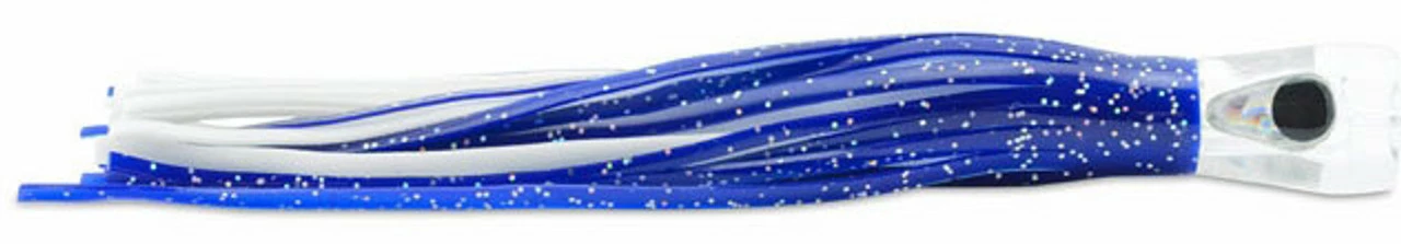 This 7 1/2″ lure has a concave acrylic head to provide a “digging” action, which leaves a large bubble trail when trolled fast. Hook or bait slides up into the hollow head. Great lure trolled plain or with natural bait. Out of this world action. Fish can’t resist its hologram eye. Made in Mylar and Vinyl skirts.