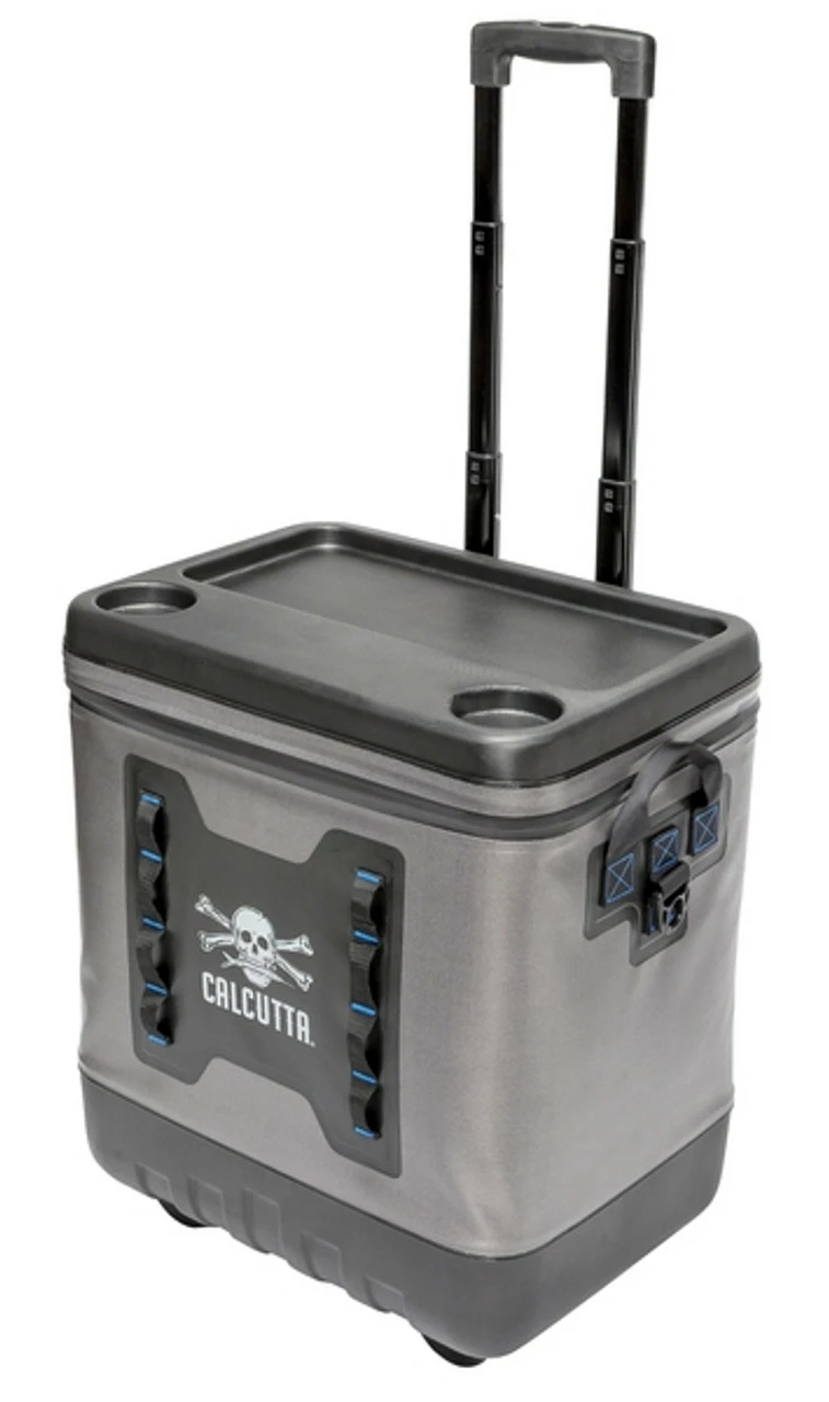 The Calcutta CRC-45 Renegade 45 Liter Rolling Cooler is a high performance, soft sided, rolling cooler that features a waterproof sealed zipper for easy access to load and unload. Moving this cooler is a breeze with the telescopic handle and molded wheels. The Renegade Rolling Cooler has sewn in lift handles to make lifting in and out of your boat or car quick and easy. The lid features built in cup holders to keep your drink in place. Integrated Molle straps are built into the front to secure extra gear. This cooler is perfect for the boat, tailgating, athletic events, or anywhere you need your cooler to travel with you.