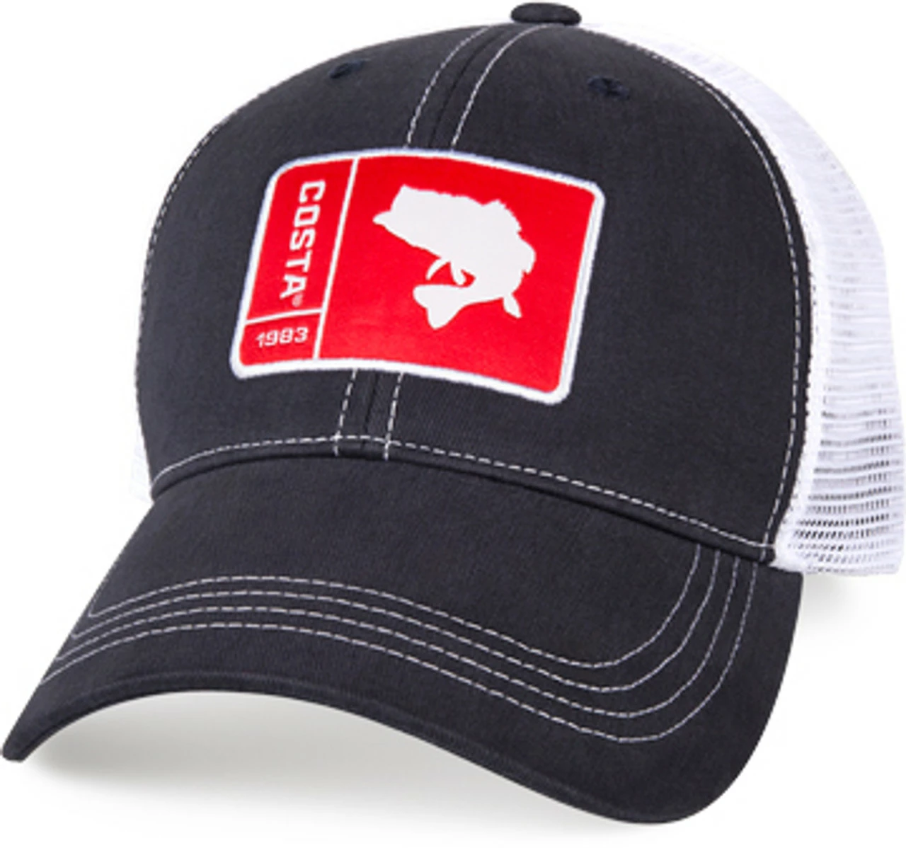 The Costa Del Mar Original Patch Bass Hats feature a 5 panel cotton twill structured front with sewn woven patch. Adjustable snap back closure.