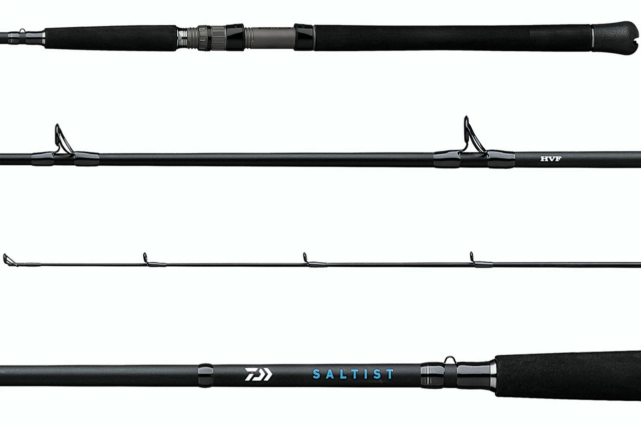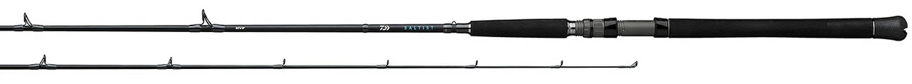 The Daiwa Saltist Inshore Casting Rods are a versatile series of rods that anglers up and down the coast will find suitable for an enormous variety of species and applications. The Saltist Inshore makes the perfect “all around boat rod” for anglers who target different species with different techniques throughout their season. Northeast fisherman will find these rods perfect for jigging bucktails for ocean fluke and seabass, while Florida anglers will love them for live lining over reefs for grouper, snapper, jacks, and more. Featuring blanks made with Daiwa’s High Volume Fiber (HVF) Technology, these rods are constructed with a low-resin, high modulus carbon graphite material with more fibers per unit area than other rods in its class. This method of construction results in superior strength, lighter weight, and enhanced sensitivity. All models are equipped with Fuji aluminum oxide guides and are fitted with comfortable split-grip EVA handles.