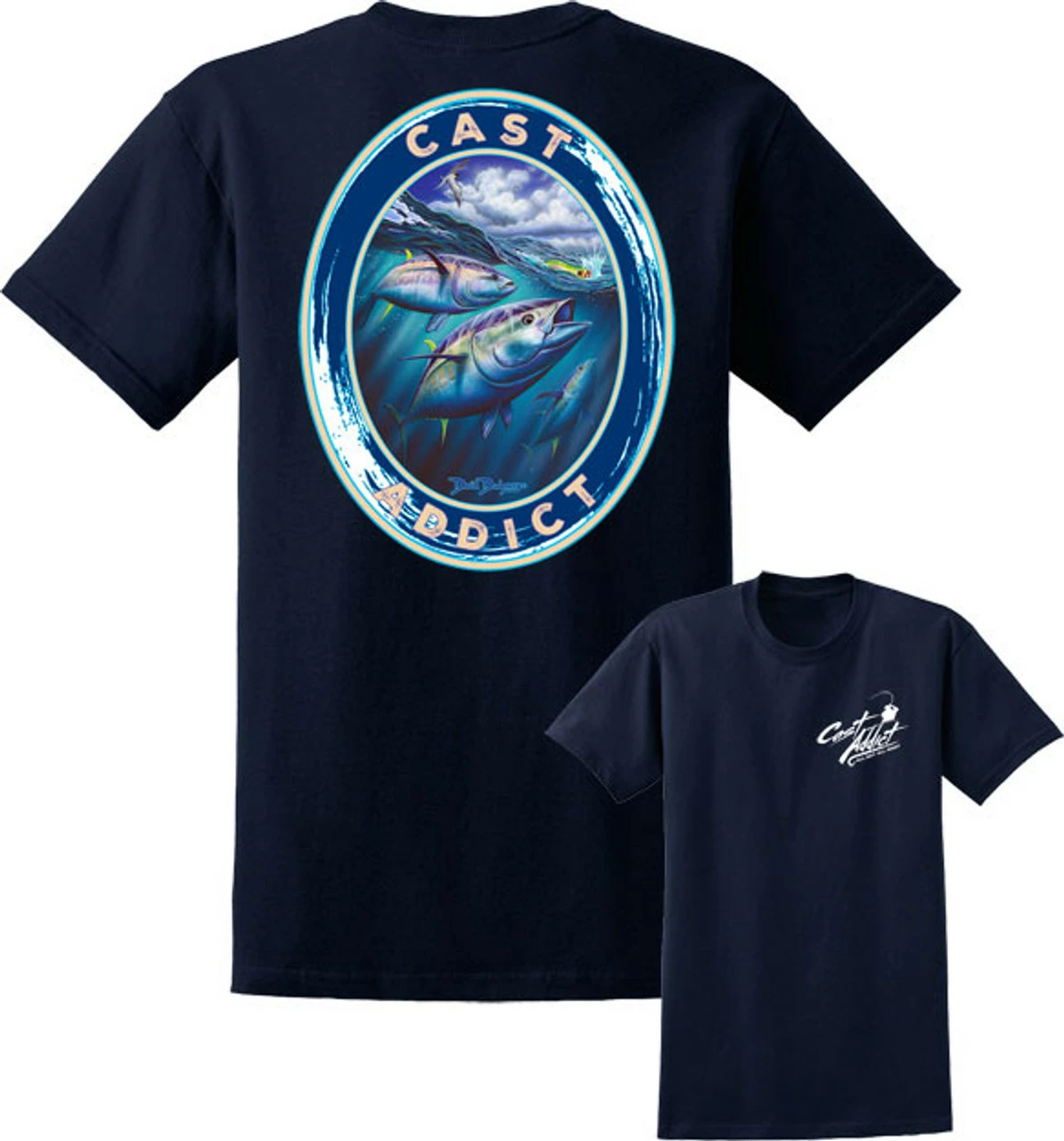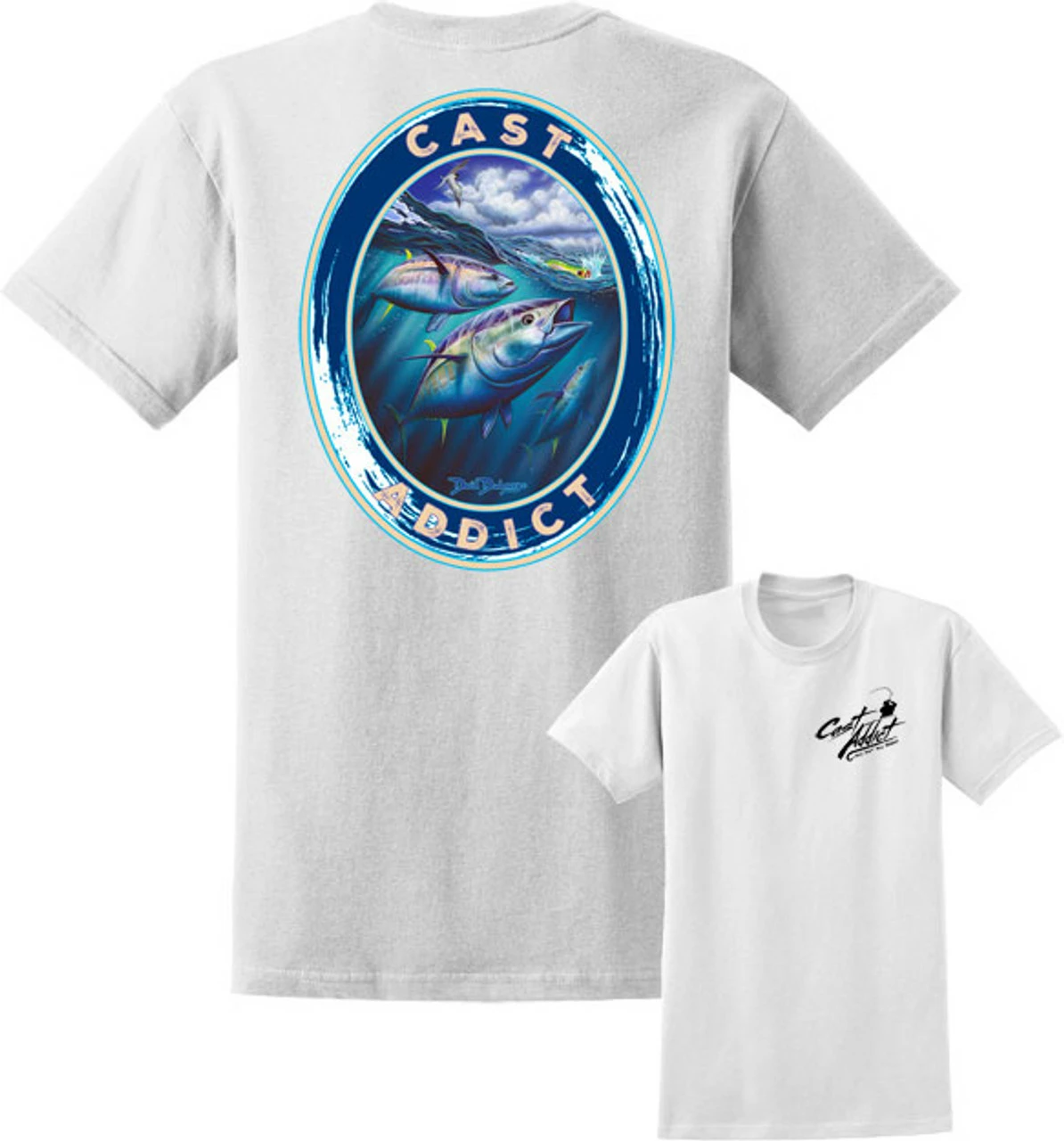 David Dunleavy DDM8051 Cast Addict Bluefin Tuna T-Shirt is a short sleeve tee featuring a David Dunleavy Bluefin Tuna design on the back and front left chest.