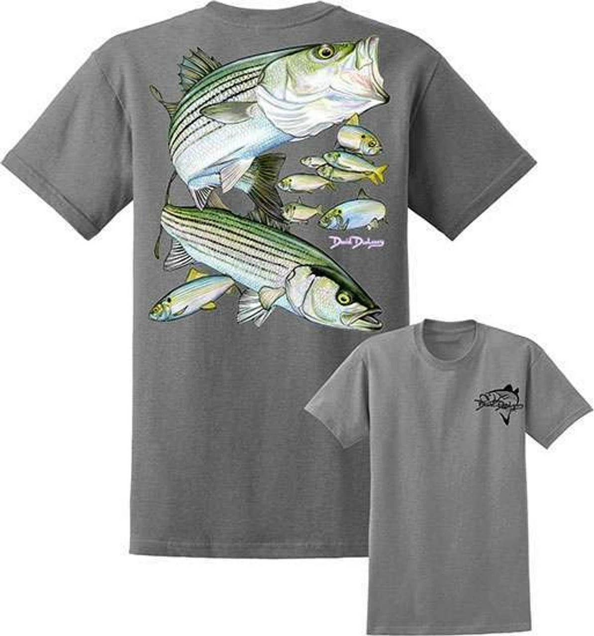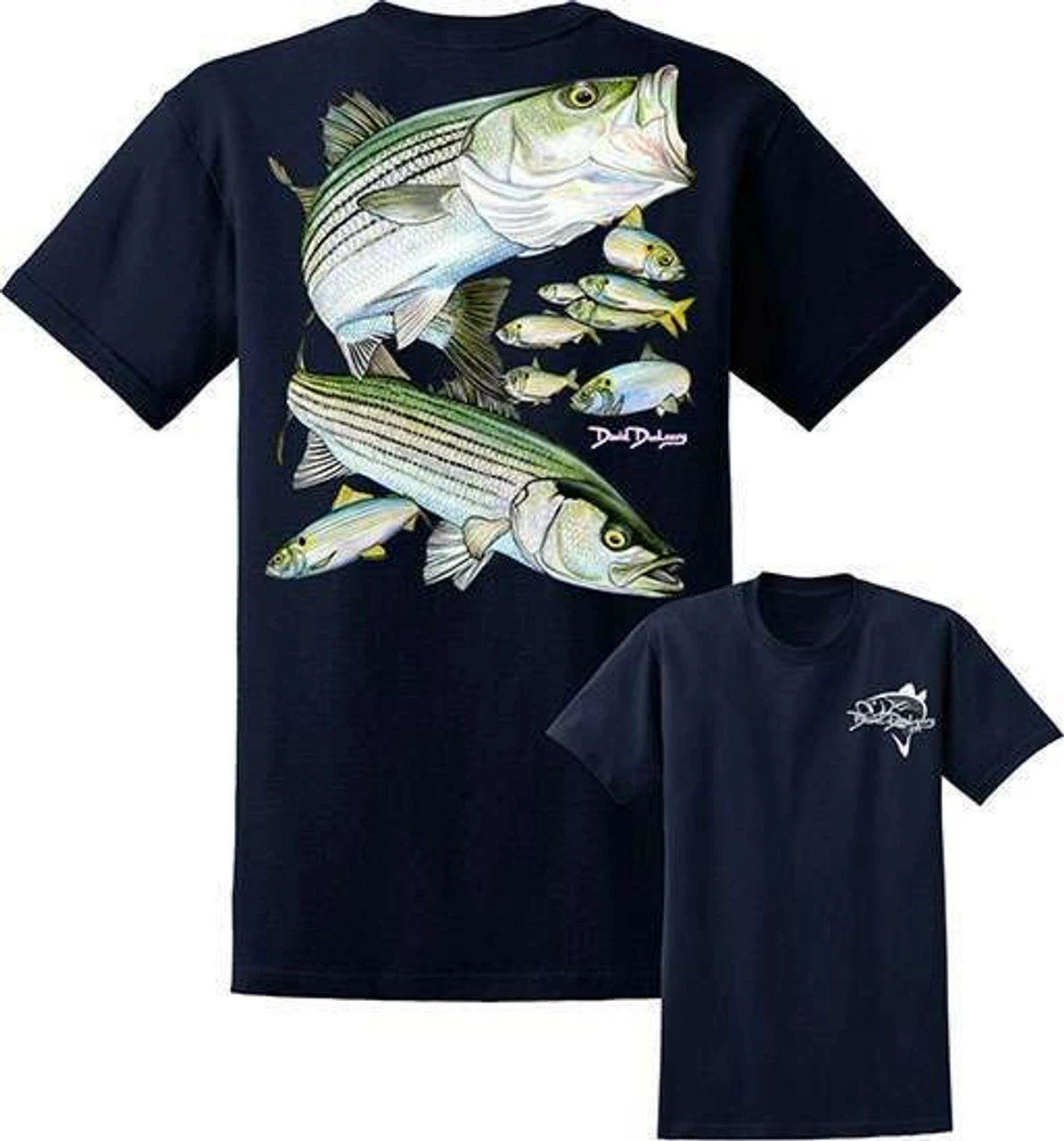 The David Dunleavy DDM8023 Striped Bass Tee features a full color design on the back and a one color design on the front left chest.