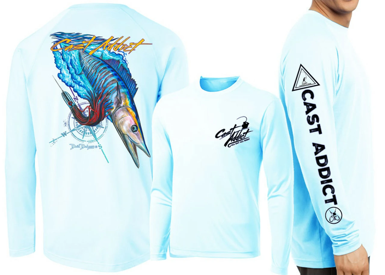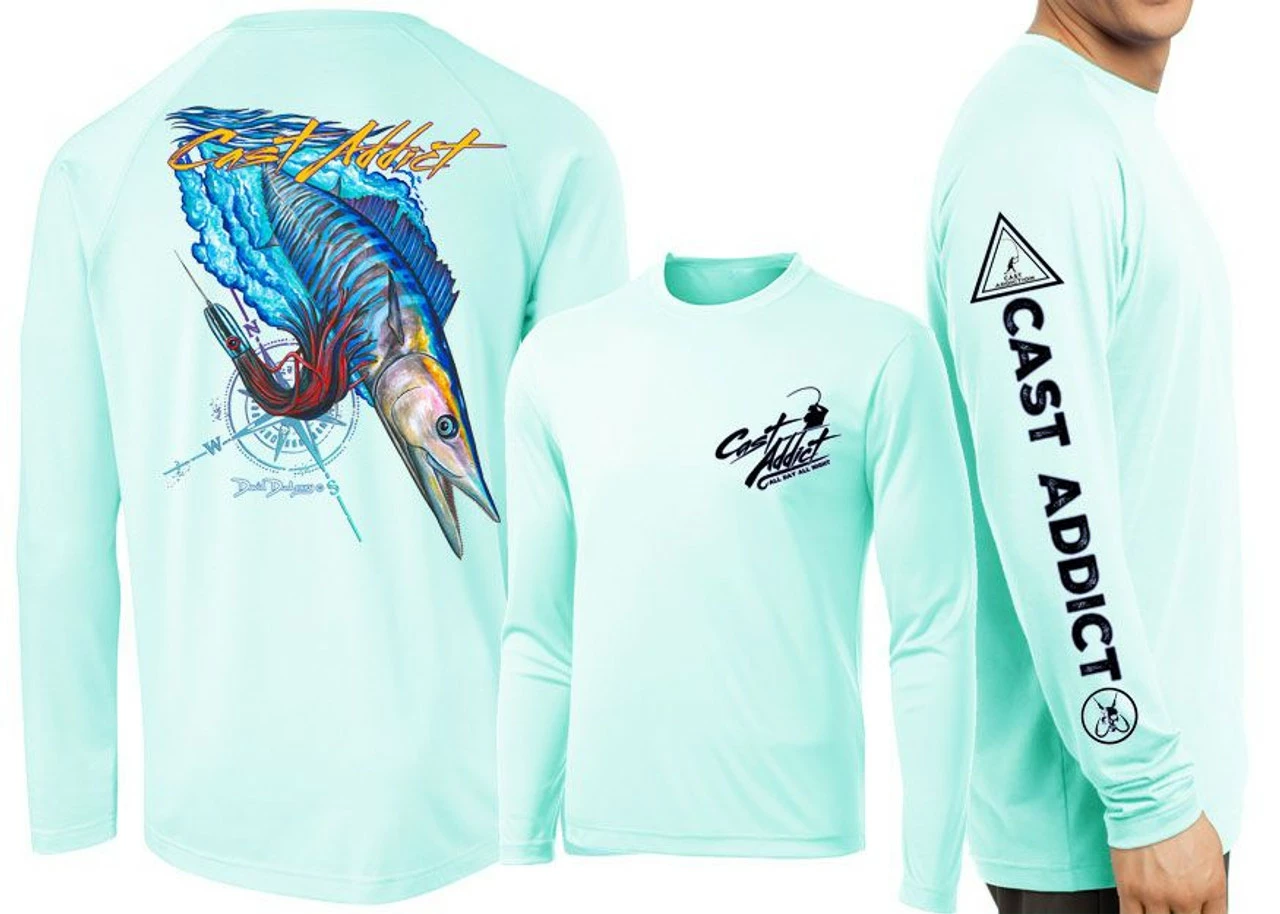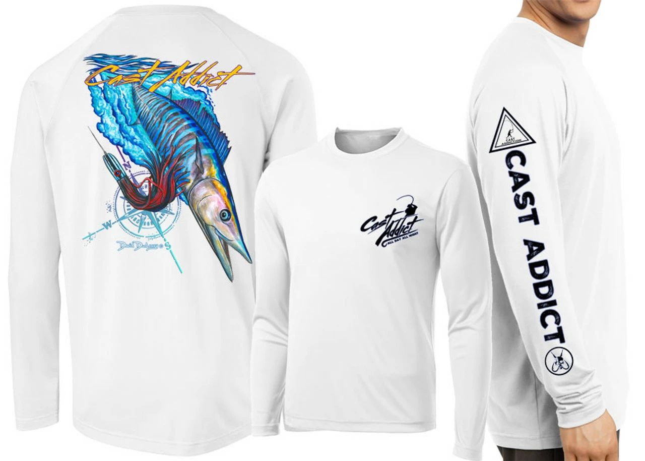 David Dunleavy Cast Addict Wahoo LS Performance Shirts feature world-renowned artist David Dunleavy’s stunningly realistic designs and keep you looking great while protecting you from the elements.