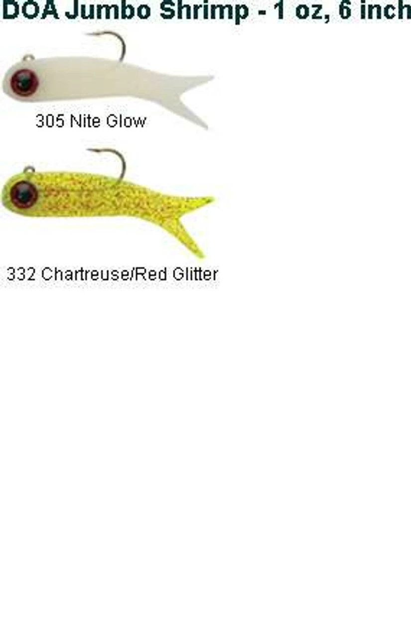 DOA Shrimp have a live shrimp look and swimming action. With their downward facing, vibration legs and consistent level drop rate DOA Shrimp Lures have successfully fooled almost every species of fish that feed on live shrimp. Just to name a few, DOA Shrimp have caught trout, snook, redfish, flounder, tarpon, ladyfish, jacks, sheepshead, large & small mouth bass. Fishermen need only to present the lures with a natural slow retrieve to be insured of many memorable days on the water.