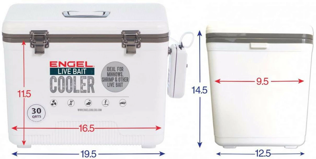 Engel’s powerful 2-speed 2X2 Air Pump keeps your water fully aerated, and the insulated cooler shields pricey bait from extreme temperatures. Plug into your boat or car?s cigarette lighter with a 12V adapter and run the pump overnight to keep bait fresh for the next morning.