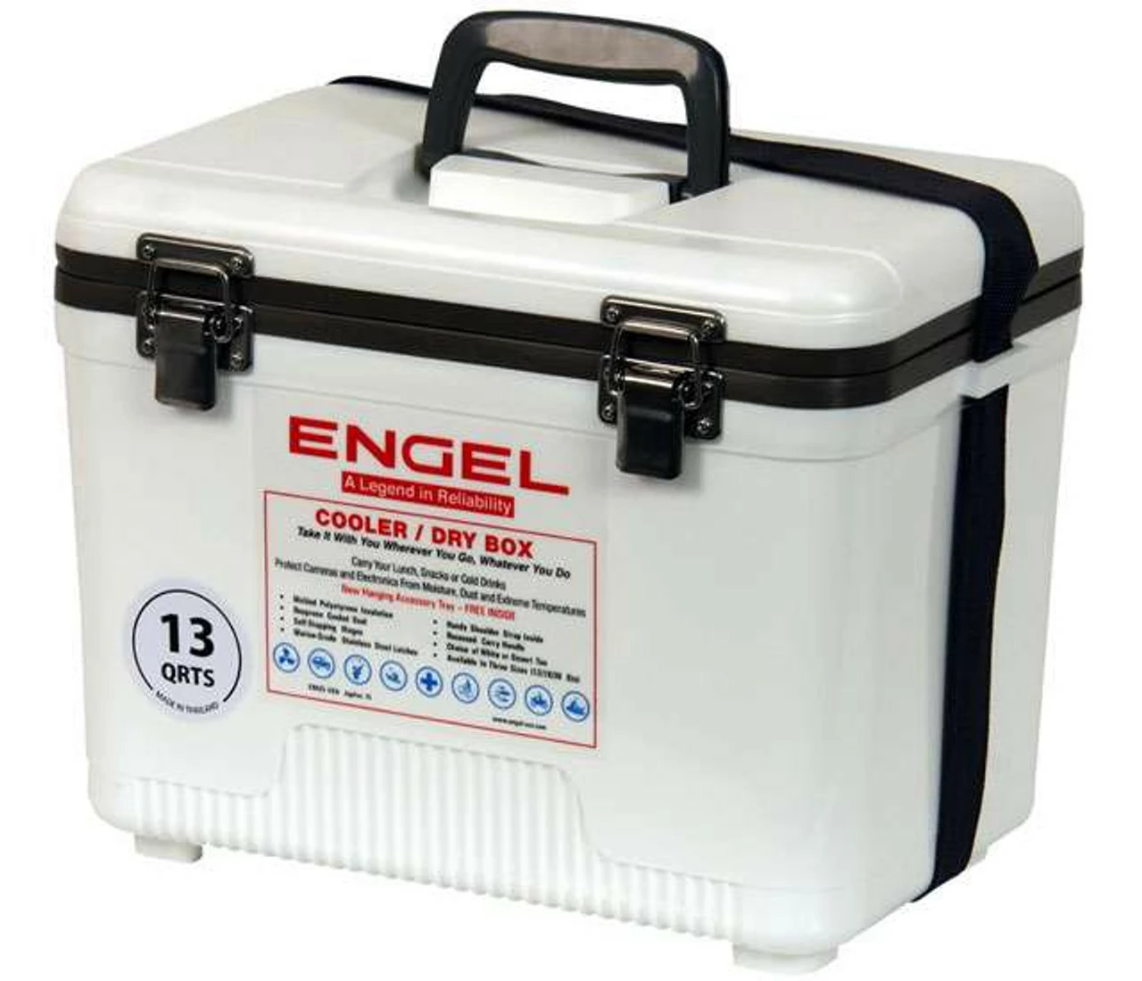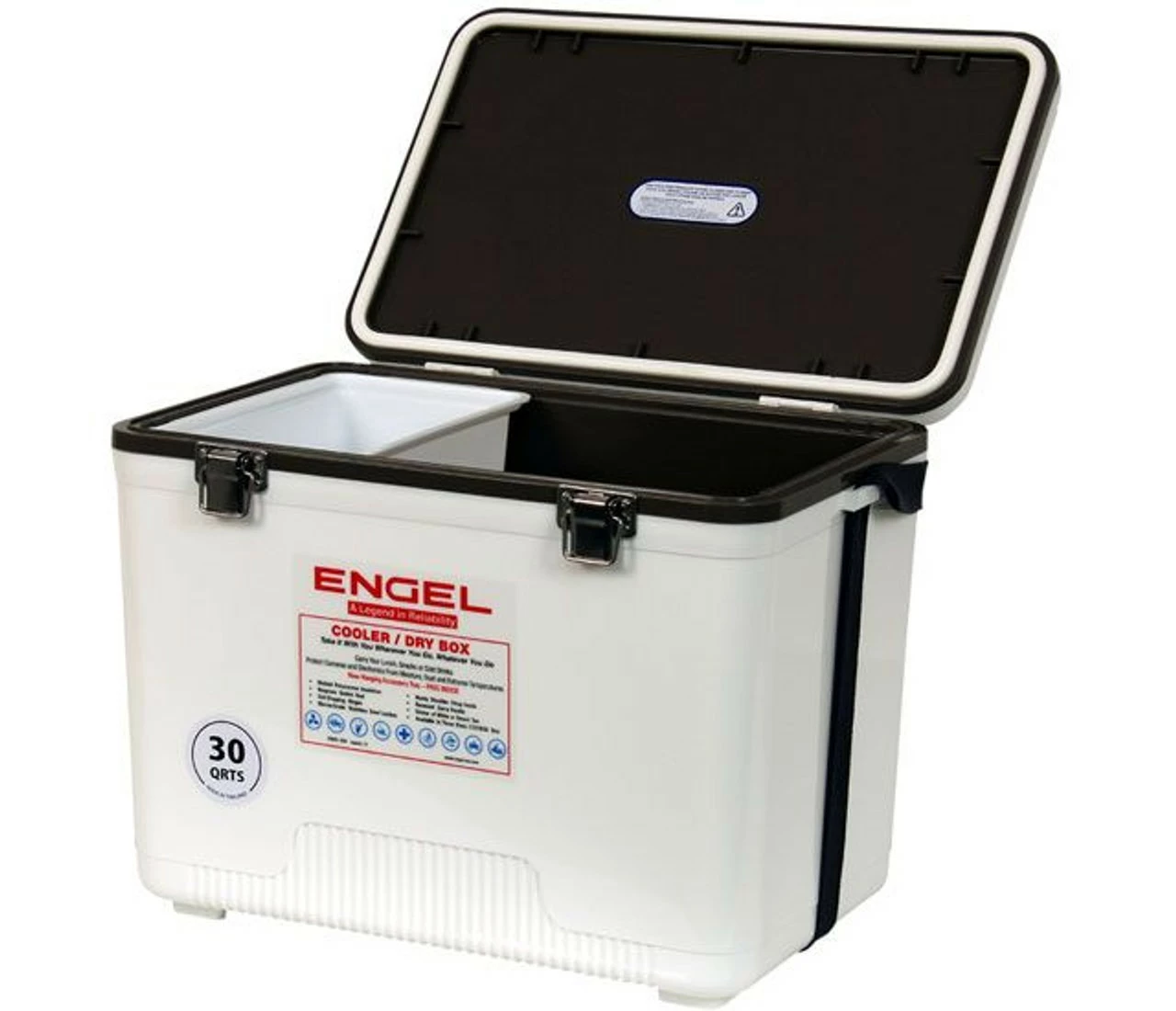 Engel drybox/coolers are perfect for keeping food fresh, for storing sensitive electrical equipment, cameras, medical supplies or safety equipment. They float and can be used as a ditch bag.