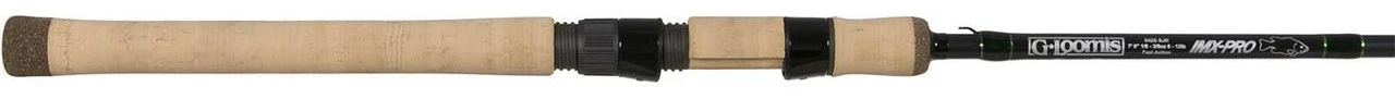 Designed to provide competitive anglers with a fully comprehensive offering of high performance, technique-specific rods, the G Loomis IMX-PRO Bass Spinning Rods take the renowned IMX series of rods to new heights. The IMX-PRO features blanks that are designed with a proprietary multi-taper-technology, making them up to 15% lighter and are stronger than ever. A new blend of hi-tech materials allows each blank to react quickly, load efficiently, and provide more sensitivity than any other IMX rod to date. Strategic scrim placements allow for the creation of very specific tapers to enhance the action for each technique. Handles are crafted from premium quality cork for maximum comfort with subtly tapered rear grips to give you that split-grip feel with full grip comfort. Guides are tangle-free Fuji K-frames. With a model perfectly suited for any conceivable bass fishing scenario, tournament anglers need to look no further than the new IMX-PRO series to develop the ultimate arsenal of technique specific gear. The IMX-PRO is a true revelation in bass rods with the quality and performance you expect from G.Loomis.