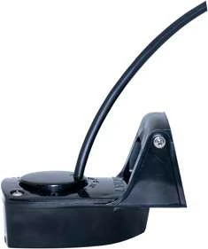 This 300 W plastic transom mount with CHIRP technology has a maximum depth of 1,500 ft; an operating frequency of 95 to 155 kHz; a beamwidth of 26/17 degrees; and mounts on a 3 to 20 degree transom.