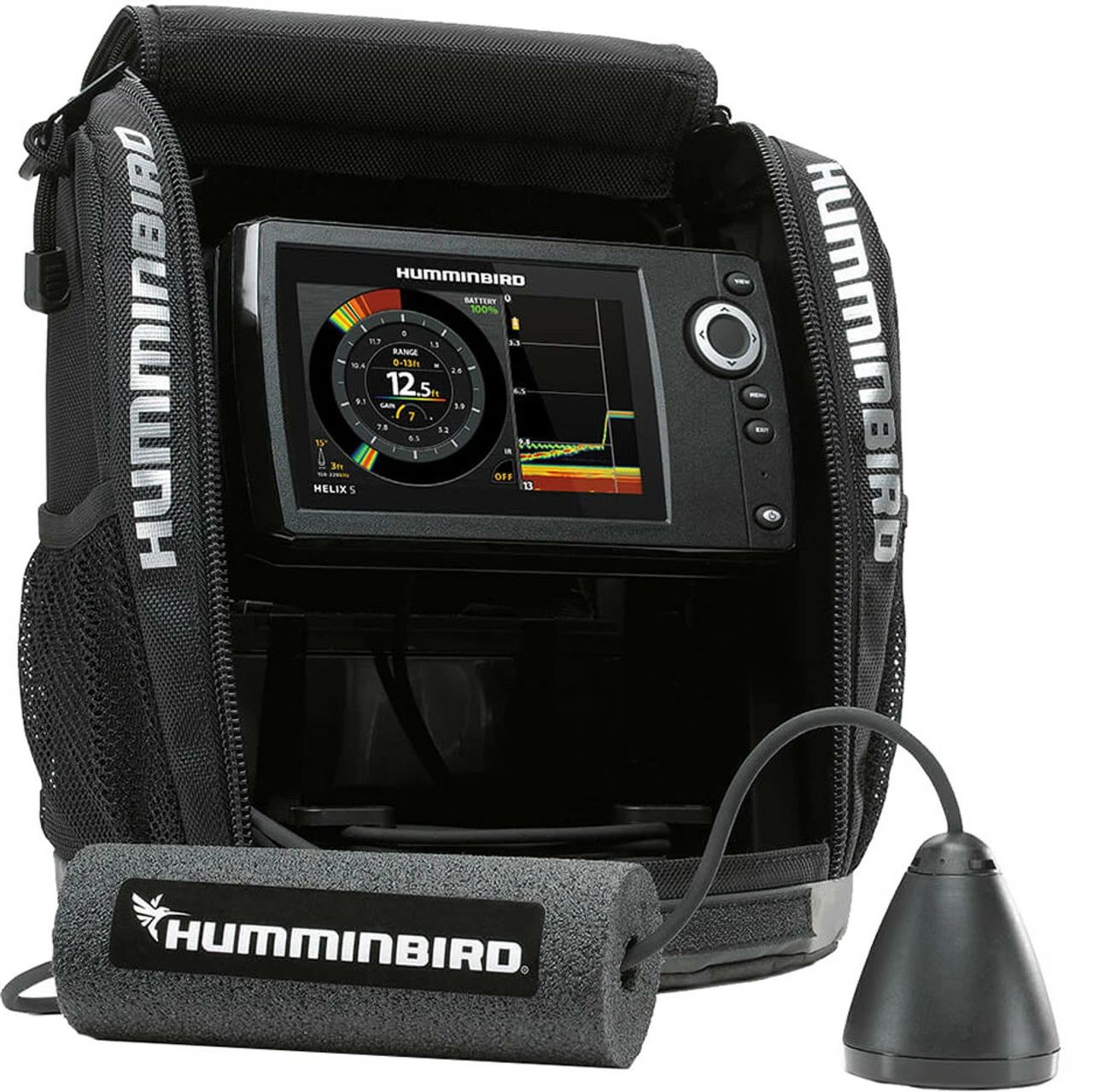 - What’s Included: ICE HELIX 5 CHIRP G2 fish finder, Dual Spectrum CHIRP Ice transducer, 9 Amp Hour battery and charger, ice shuttle, hardware, power cable and portable bag.