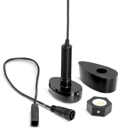 Plastic Thru-Hull Transducer supports Dual Spectrum CHIRP 2D Sonar with a CHIRP range of 150-220kHz. Includes built-in temperature sensor, rugged composite design and 30’ cable.