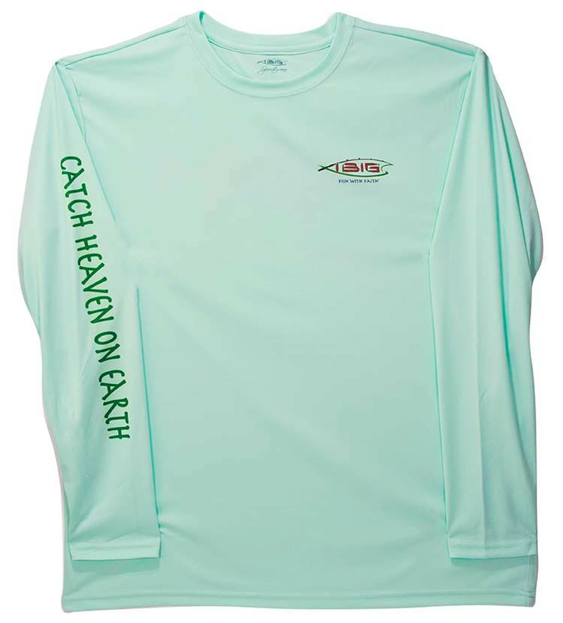 The iBig Seagrass Snook Performance Long Sleeve Shirt is inspired by charter boat captains who know that sun protection is a must out on the water. Having the right sun protection is as important as having the right gear. Whether saltwater fishing or freshwater fishing this long sleeve shirt will keep you protected and is designed for the harsh UV rays of the sun. Made with the angler in mind with breathable and moisture wicking fabric that will keep you cool all day on the water. This long sleeve performance shirt features a snook in the seagrass printed design across the back.