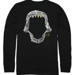 The Jetty Jaws Long Sleeve T-Shirt is made with comfortable, premium ultra soft 100% ringspun cotton material. It features shark jaw design on the back with small Jetty shark jaw logo on the front. The prints are printed with water-based discharge ink. Perfect for wearing as a layer underneath any Jetty jacket or flannel when you need that extra warmth. Ideal for those cooler summer or spring days on the water.