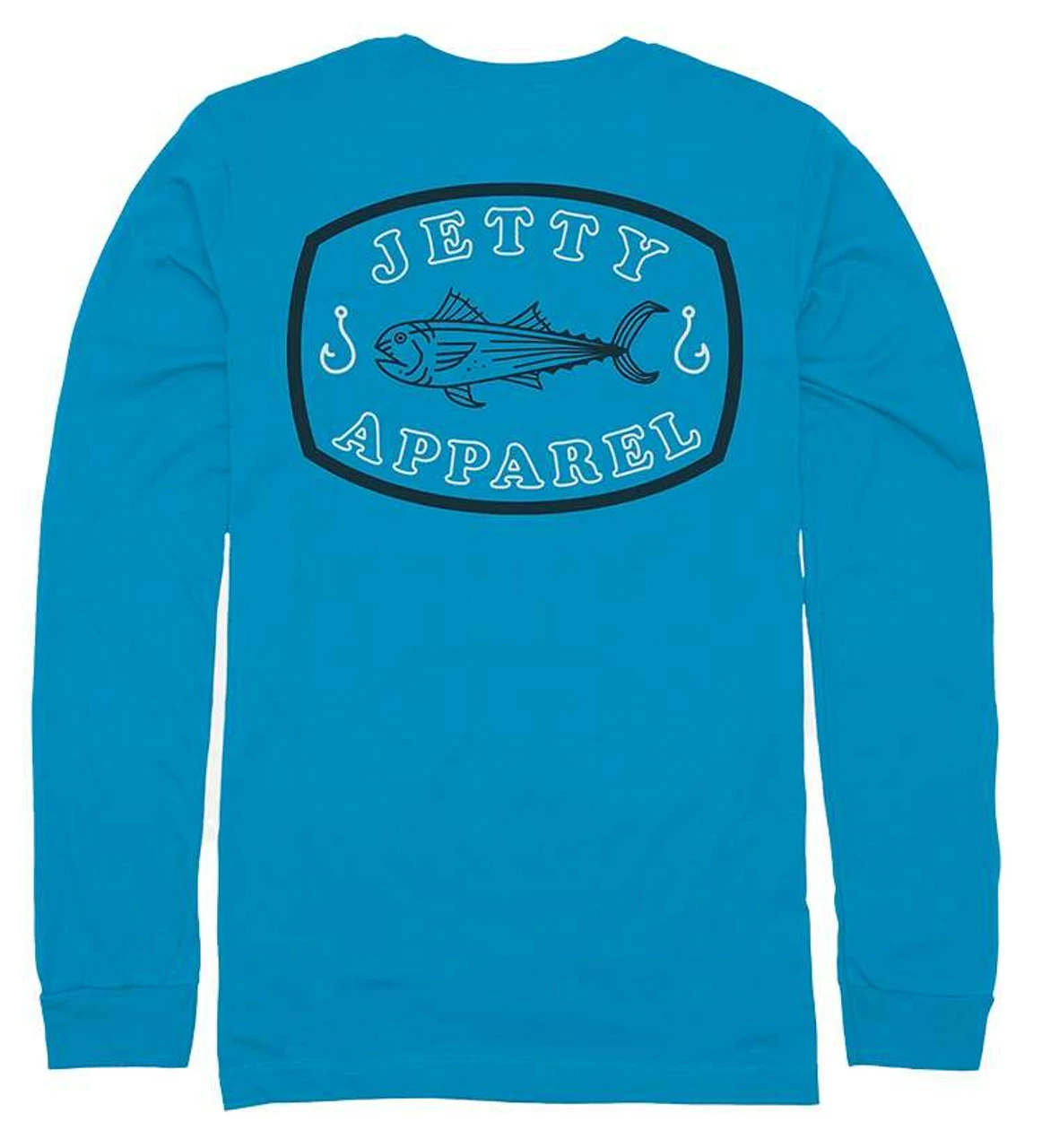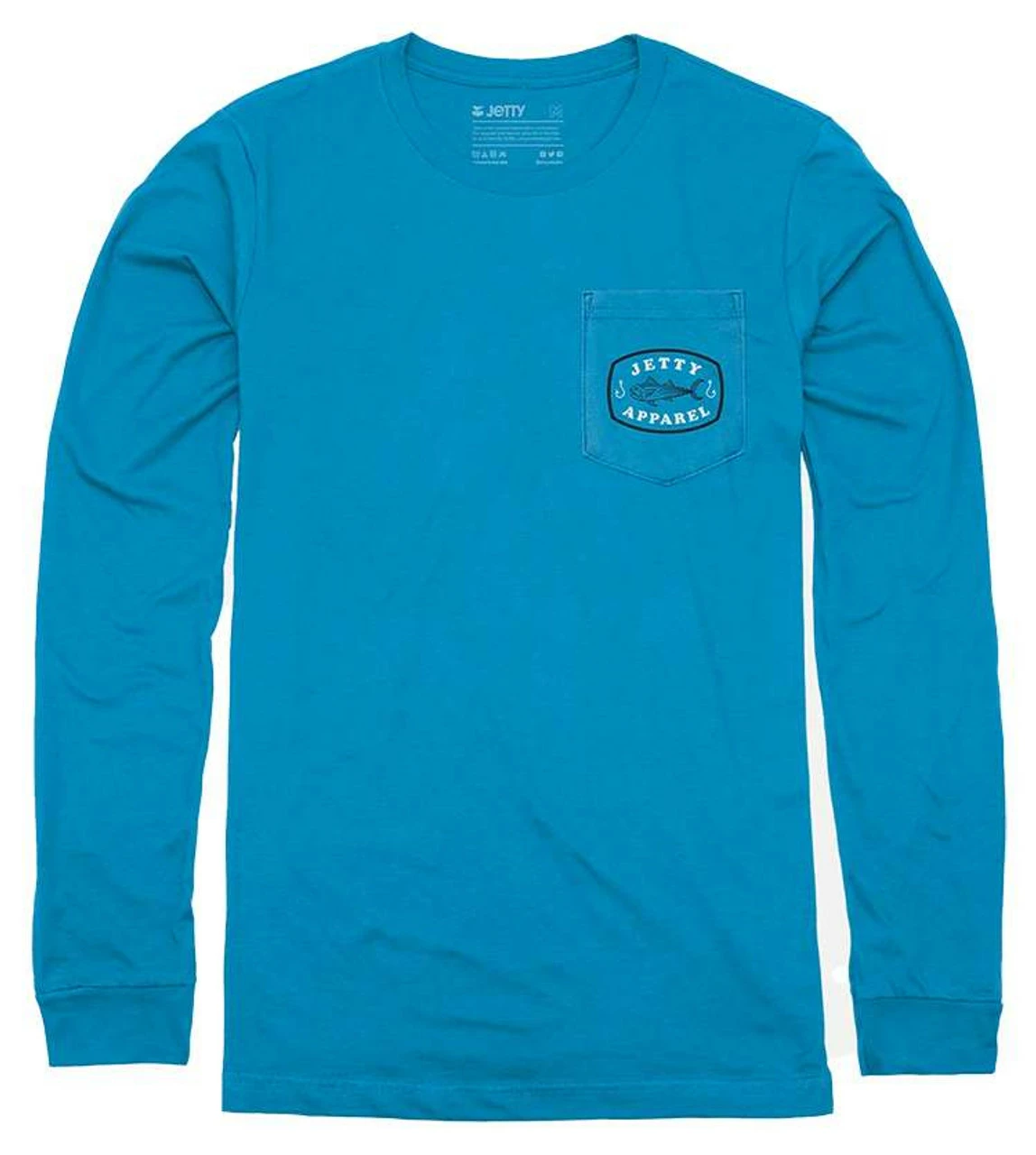 The Jetty Open Water Long Sleeve Pocket Tee is made for any angler who dreams of being on the open water. This long sleeve shirt is made with comfortable 100% cotton material. It features Jetty fish and hooks design across the back with small version on the front. The design is pigment dyed printed with water based discharge ink. This tee is ultra soft to the touch.