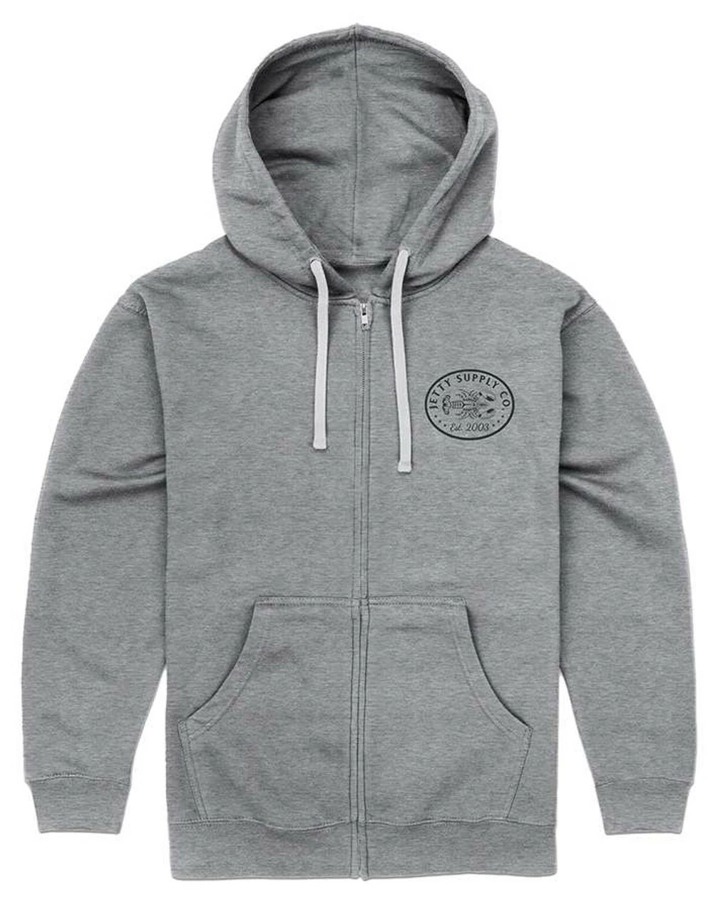 The Jetty Pincer Zippy is a full zip-up hooded sweatshirt. Perfect for those days when you aren’t sure what the weather holds. It’s made with 50% cotton/50% polyester materials and is a medium weight (6.5oz) sweatshirt. The print is made with water-based discharge ink and shows a large Jetty lobster logo design on the back. You can’t go wrong with this premium ultra soft feel sweatshirt.