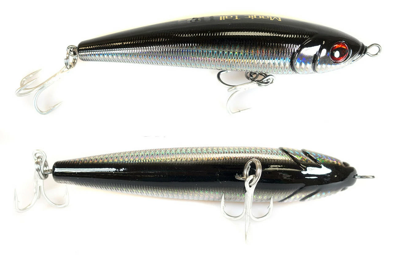 The Jigging World Magic Tail Sinking Stick Baits are tuna killers! Featuring 200lb through-wire construction, 5X strong treble hooks, internal rattles, and 5 colors to pick from, you will have a hard time finding a better stick bait capable of taking down large bluefin for the money. While the floating version has been a popular stick bait, the sinking version has a better overall action and will be sure to produce stud bluefin tuna, GTs and more.