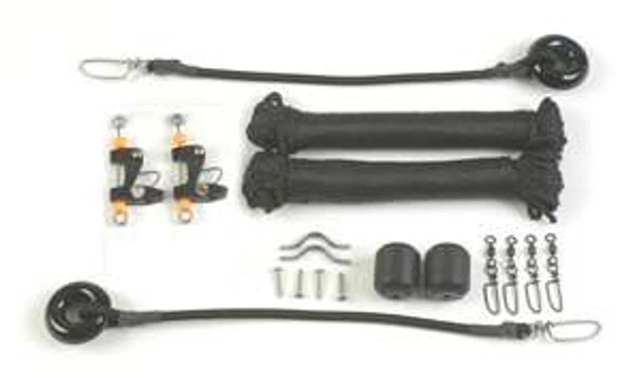 No matter what size outrigger you have, Lee’s has a rigging kit to suit your needs. From Single to Double Kits, we have it all. Products include Complete Kits, Line Kits, Release Clips and individual components. Line types include 400# test Black Braided Polyester as well as 400# test Black Monofilament. All Kits include Tension Cords, Eye Straps and Snap Swivels, and Ball Stops.