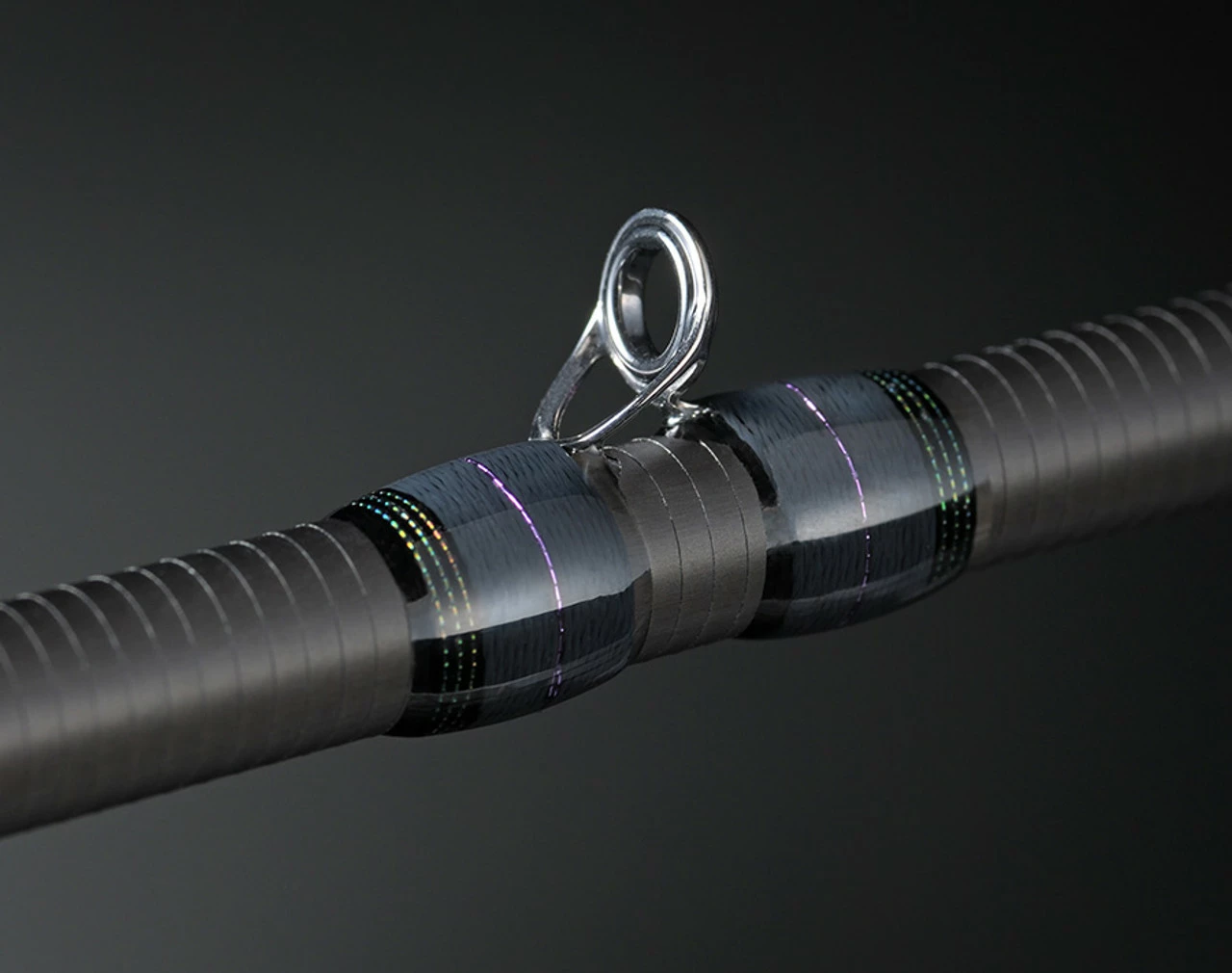 To further reduce unnecessary weight and improve performance, the Destroyer utilizes a smaller-diameter thread made of special fiber, which allows for tighter, more effective guide wraps. This not only minimizes the wrap area and associated epoxy to reduce weight—it minimizes any negative impact that hard epoxy guide wraps can have on the natural bend-curve of the blank. The result is a smoother, more intuitive blank with minimalistic threading for maximum strength and performance.