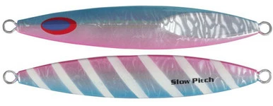 Ocean Tackle International Slow Pitch Jigs were developed from the Japanese Slow Jigging Technique. These Jigs have a slower rate of descent to replicate a shocked or stunned bait fish which gives the jig more time to get bit. This is due to the keel weighted and slope design on the underside of the jig witch gives its erratic actions on the fall.