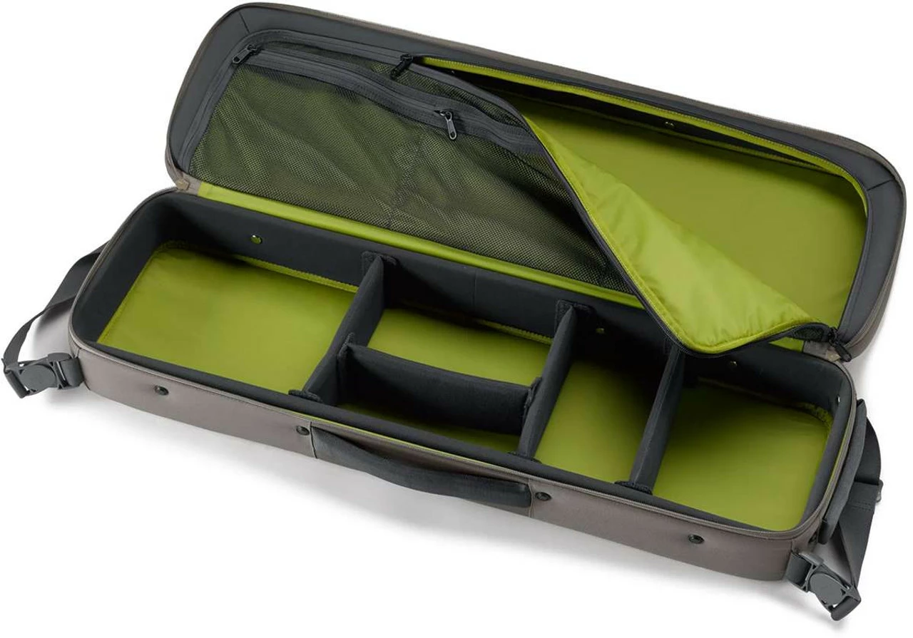 The Orvis Carry It All Bag was designed years ago by Orvis Chairman Perk Perkins to be sure his equipment stayed safe and in his possession on flights to fly-fishing destinations. Built from 100% recycled CORDURA ECO, the Carry It All protects and organizes all your fly-fishing equipment in a separate internal zippered storage compartment for rods and internal compartments with improved adjustable dividers to securely customize the storage of all of your gear. The main compartment is protected by a lockable zipper. The outer corners are reinforced for extra protection and there is an external zippered pocket for quick access items. Zippered stretch-mesh compartments offer additional divided storage.