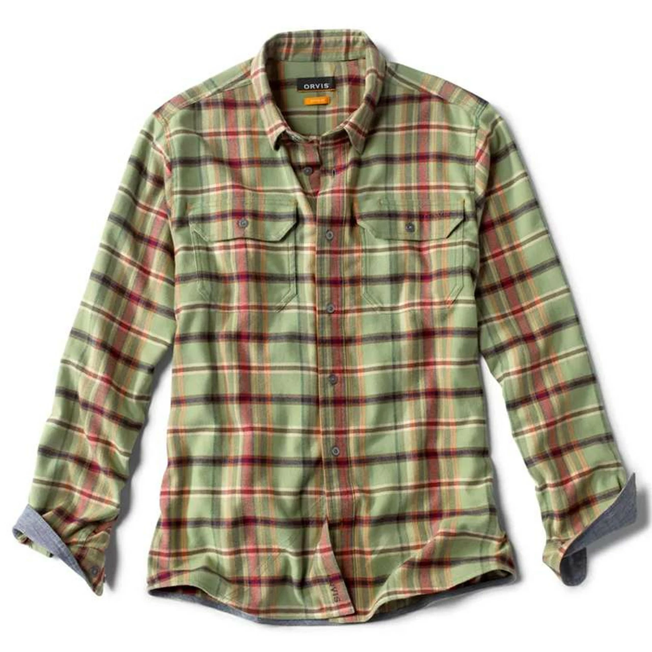 The Orvis Mid Mountain Tech Flannel is a midweight, wrinkle resistant, button up shirt made with a blend of cotton, MarinoWul+ and spandex materials, offering moisture wicking and breathability throughout the day. The MarinoWul+ is bluesign certified as good for the environment. The stretch in this flannel shirt provides movement through every cast and hookup.