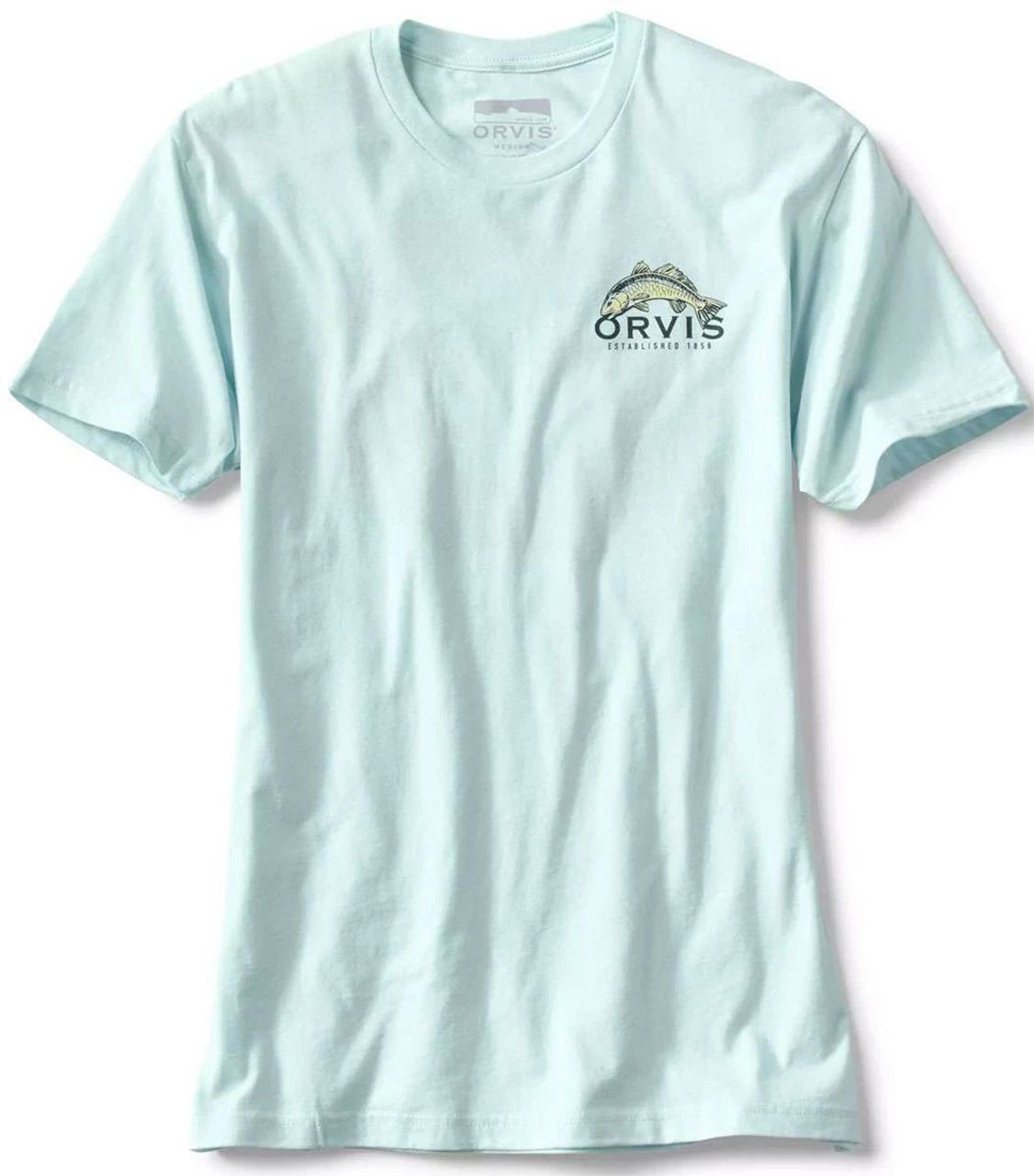 The Orvis Saltwater Circle T-Shirt is a classic logo tee for easygoing wear on or off the water Soft pure cotton breathes for all-day comfort. This shirt is made of breathable and soft cotton-rich blend for all-day comfort. Saltwater Circle graphic on the back and small graphic on front left chest.