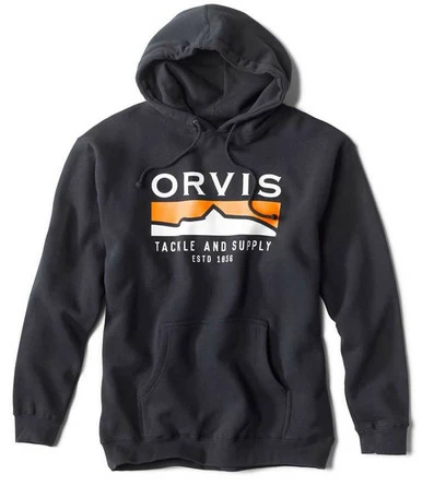 The Orvis Trout Horizon Hoodie is a heavy weight hooded sweatshirt made with a premium soft cotton blend. It’s generously sized for comfort. Keep your hands warm with the kangaroo front pocket. Great for layering or alone. Made for fall and winter fishing seasons. This sweatshirt features an Orvis trout graphic on the front.