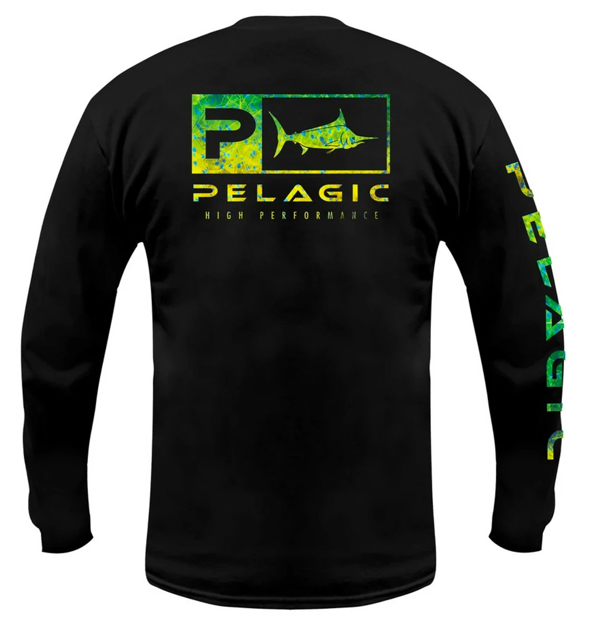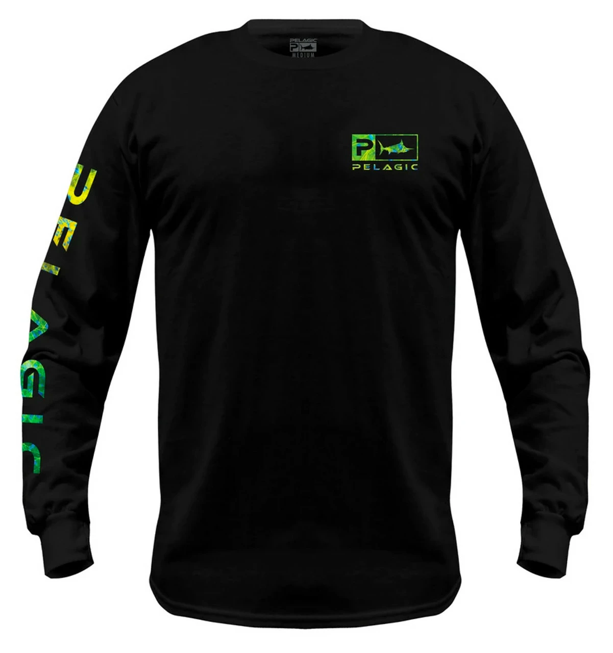 Pelagic Deluxe Fill Long Sleeve Shirts bring you the same comfort in your many Pelagic long sleeve tees with 100% ring spun cotton and soft hand feel. Featuring a classic fit for all around comfort. These long sleeve tees have Pelagic’s deluxe flag logo icon with large version on the back and small version on the front with a right sleeve print.