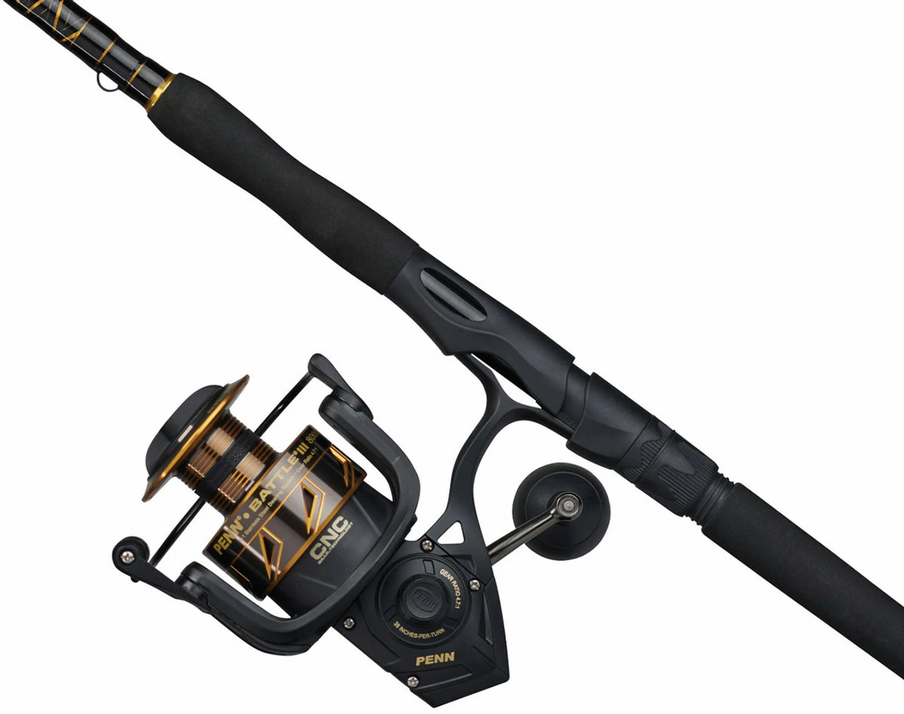 Penn Battle III Spinning Combos feature the Penn Battle III spinning reel with full metal construction, which enhances rigidity, strength, and durability. The Battle III Spinning reel is then combined with the Penn Battle III combo rod. Let the battle begin!