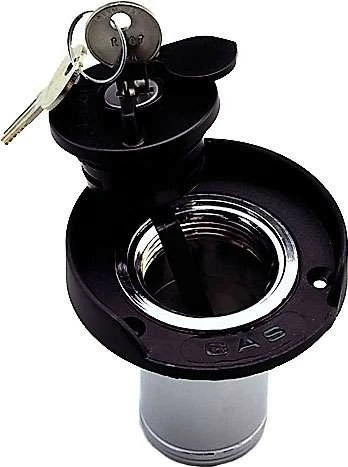 The Perko 1399DP0CHR Locking Gas Fill f/ 1-1/2” Hose features a die cast zinc alloy body ? chromium-plated ? black plastic cap, Impervious to gasoline. Complete with grounding lug with screw.
