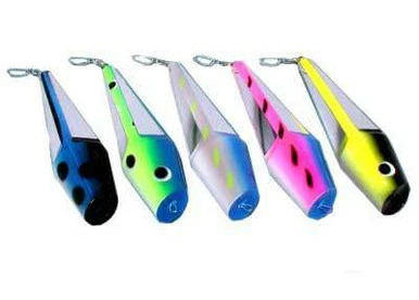 The Mirrored Bowling Pin Teaser is the extreme in erratic action, earning worldwide recognition as a top billfish teaser. The Mirrored Bowling Pin moves erratically side to side 1-3 ft. below the surface. Mirrors emit flashes of light allowing you to fish a field of vision over 5 times a large. Ideal for targeting top billfish. Also attracts Dolphin, Wahoo, and Tuna. Teaser can be trailed 15-40 ft. off the transom or from the outriggers. Great for in-line use.