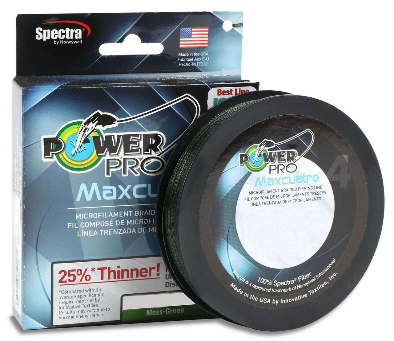 PowerPro Maxcuatro Microfilament Braided Line is 25% thinner than existing PowerPro lines with equivalent strength. Maxcuatro line optimizes your casting distance while increasing your reel’s capacity. With 4-end lighter and softer construction made with Honeywell Spectra HT fiber, this ensures longer casting distance