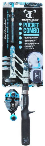 The Anything Possible ProFISHiency Pocket Combo – True Timber Rift is the ultimate tangle free travel rod for those short notice fishing trips. The fiberglass rod extends to 30” and can be retracted to 18” to make storage easy, while the inline feed prevents the line from tangling. The micro spincast reel features a metal cone, 4.1:1 gear ratio, an aluminum handle with EVA knobs, and comes pre-spooled with 6lb line. The Premium Pocket Combo includes a 1/16oz spinnerbait, practice casting plug, and comes in your favorite camo pattern.