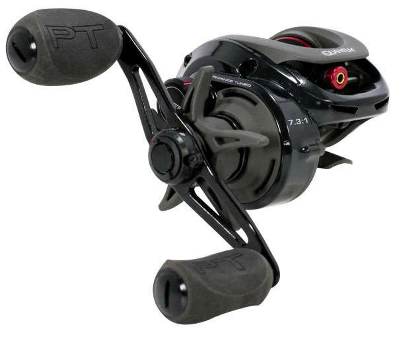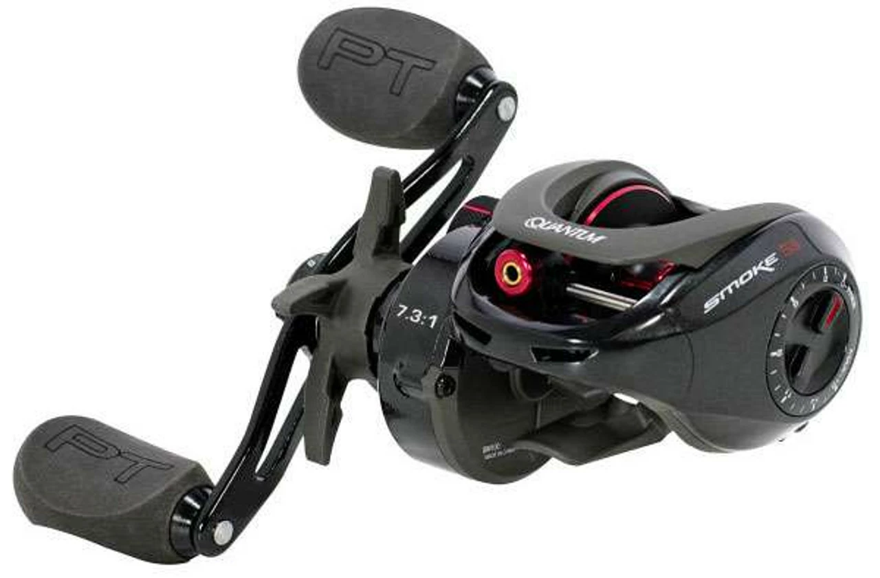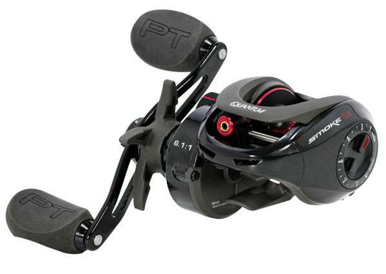 Quantum Smoke PT Baitcasting Reels are engineered with a larger 35.5 mm spool into a very compact frame to provide anglers plenty of line capacity, longer casts, and more inches of line pick-up with every turn of the handle, compared to smaller spooled reels currently in the fishing industry. These reels feature a top-notch braking system with a new ACS 4.0 cast control that is lighter in weight which minimizes the amount of energy it takes to get the spool spinning on a cast, along with additional brakes that disengage around 5,000 RPMs to maximize distance.