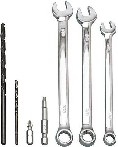 The RailEasy C0988-0000 Cable Railing System Installation Tool Kit includes 7/16 in. and 5/16 in. open wrenches, 1/8 in. and 7/32 in. drill bits and #2 stainless steel Phillips head & Square head driver bits. These Installation tools are meant for use on railing systems where RailEasy Tensioners are utilized.