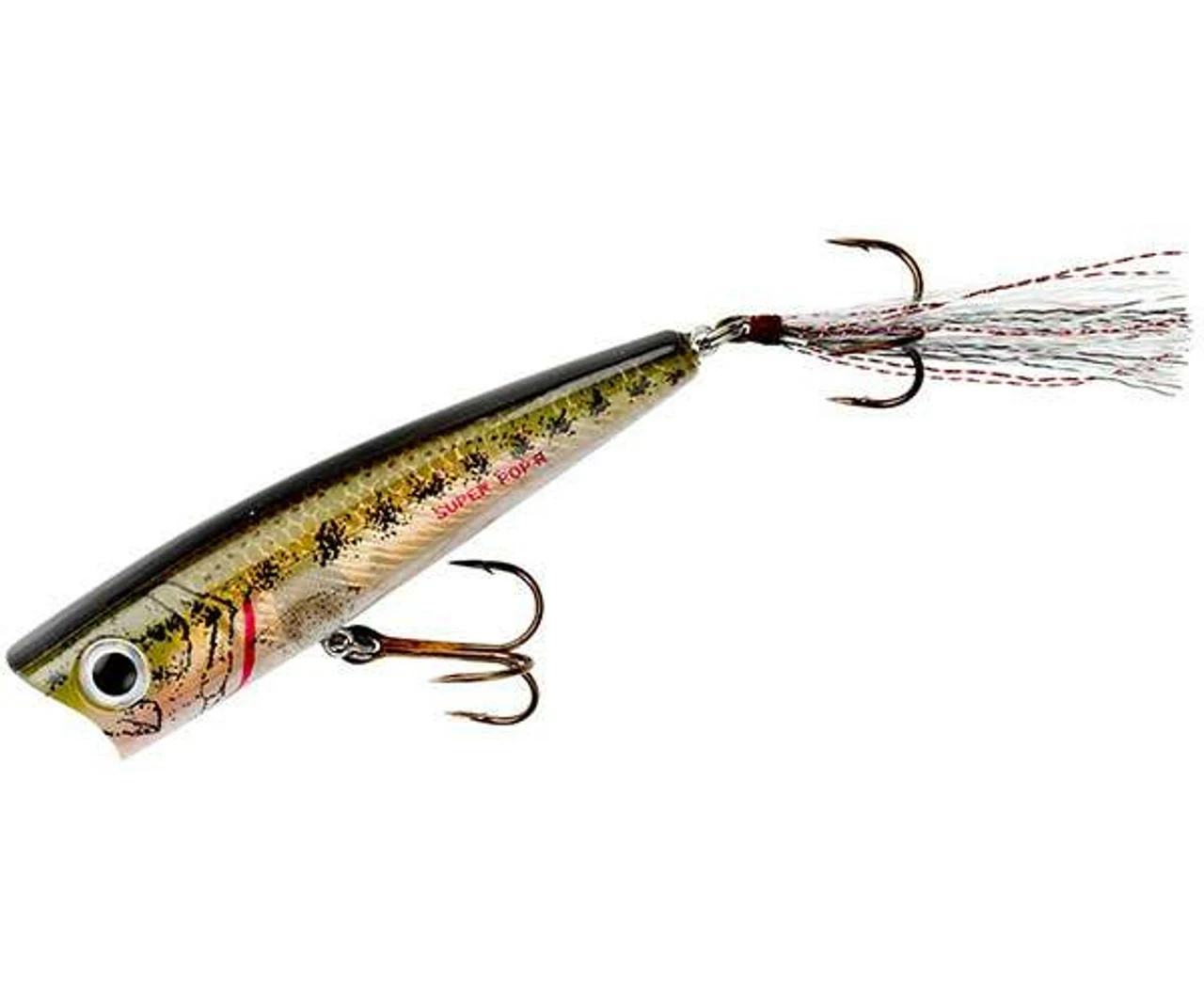 The Rebel P66Z Super Pop-R topwater chugger/popper features the company’s G-Finish decoration application, which produces light reflections that more-accurately mirror those of a real baitfish. Premium components include XCalibur Tx3 rotating hooks (the back dressed with flash and mylar), a big, 3D eye and lifelike details. The concave mouth chugs and spits with every twitch of the rod tip.