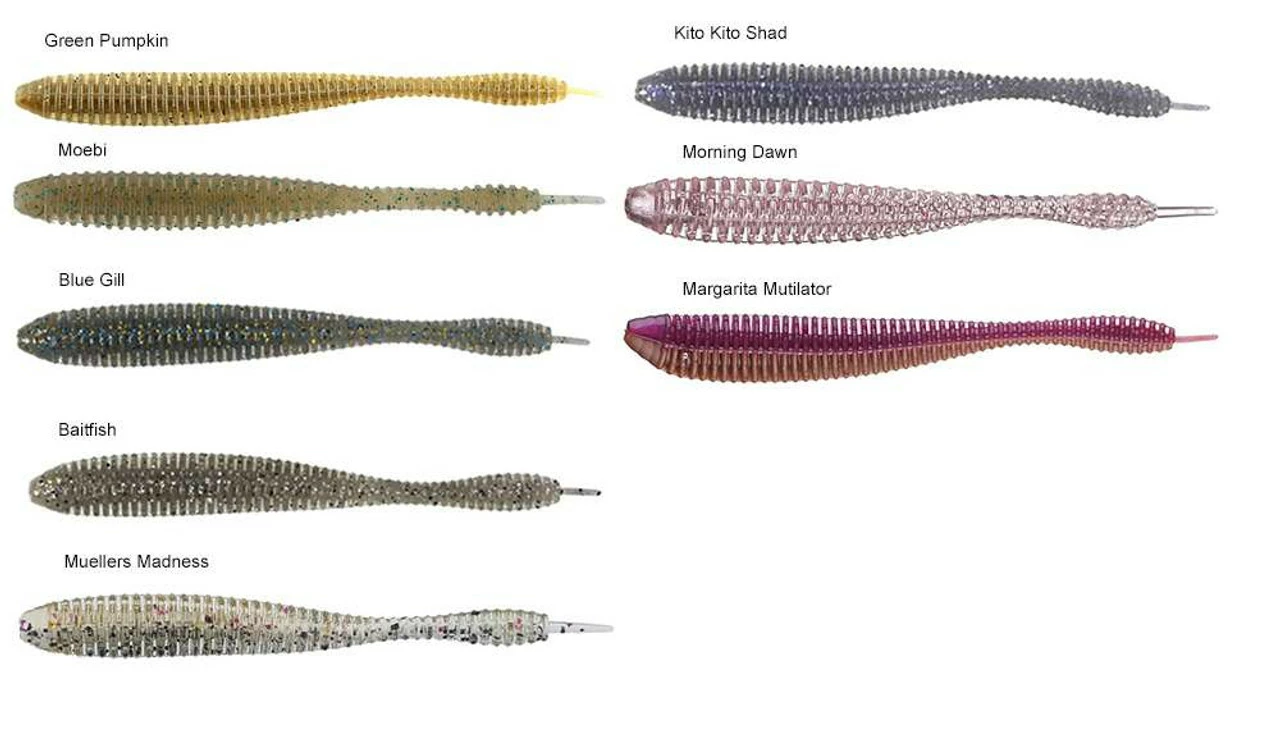 | Color | Watermelon Seed, Green Pumpkin Silver, Kito Kito Shad, Icefish Holo, Purple Weenie, Neon Wakasagi, Morning Dawn, Margarita Mutilator, Green Pumpkin, Moebi, Scuppernong, Blue Gill, Green Pumpkin All Stars, Baitfish, Black Red Fleck, Watermelon Red Flakes |