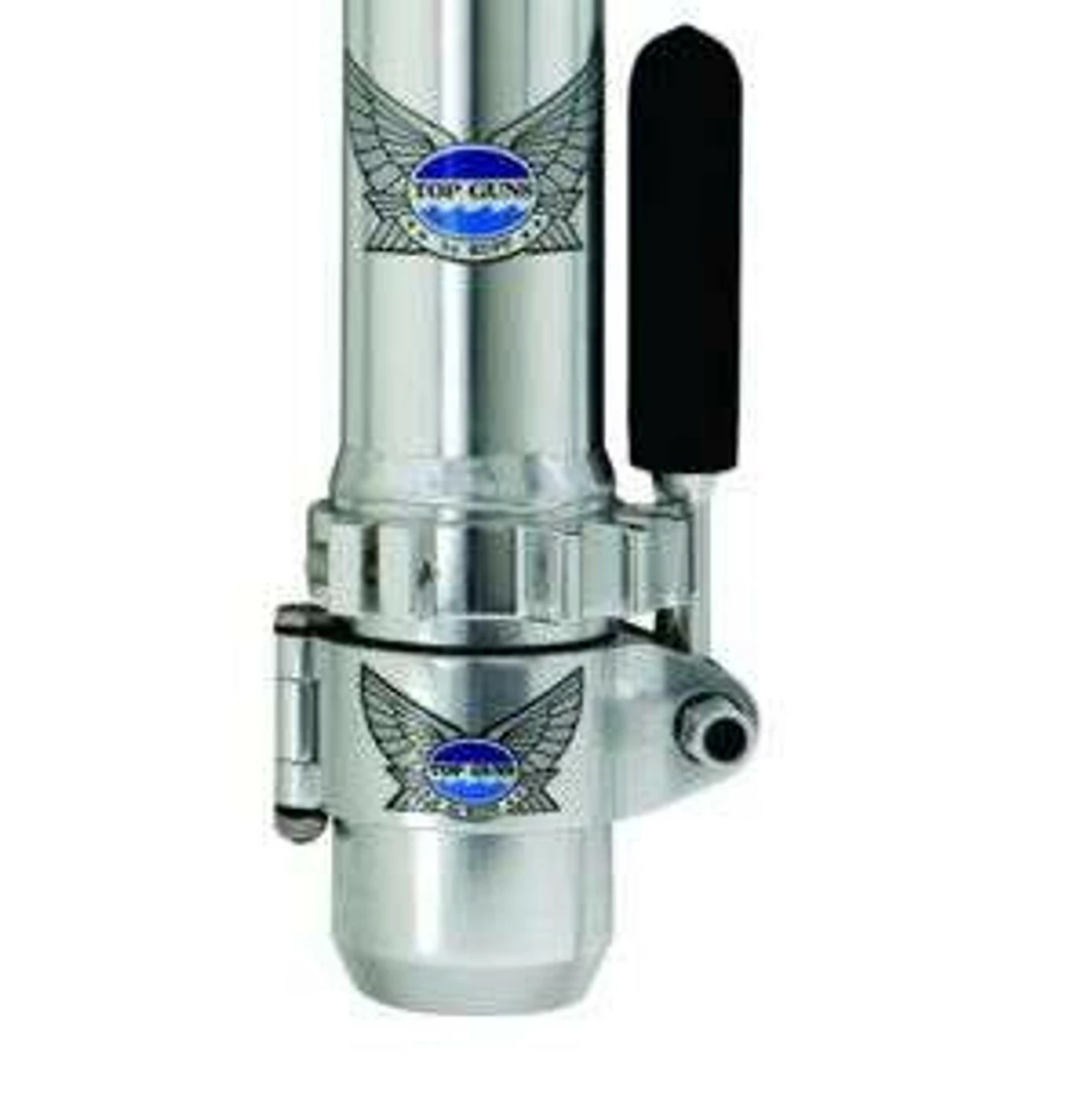 Top Guns TM Posi-Locs feature provides extra pulling power for the most demanding sportsfisherman. Offering several positions for a variety of trolling patterns, Posi-Locs attach either below or above the clamp for your choice of handle locking postions (shown above for locking handle in up position). Crafted from solid aircraft aluminum, Posi-Locs provide all the pulling power necessary under the toughest conditions. Posi-Locs are supplied standard on Rupp Top Guns but are available for retro-fit for early model Top Guns.