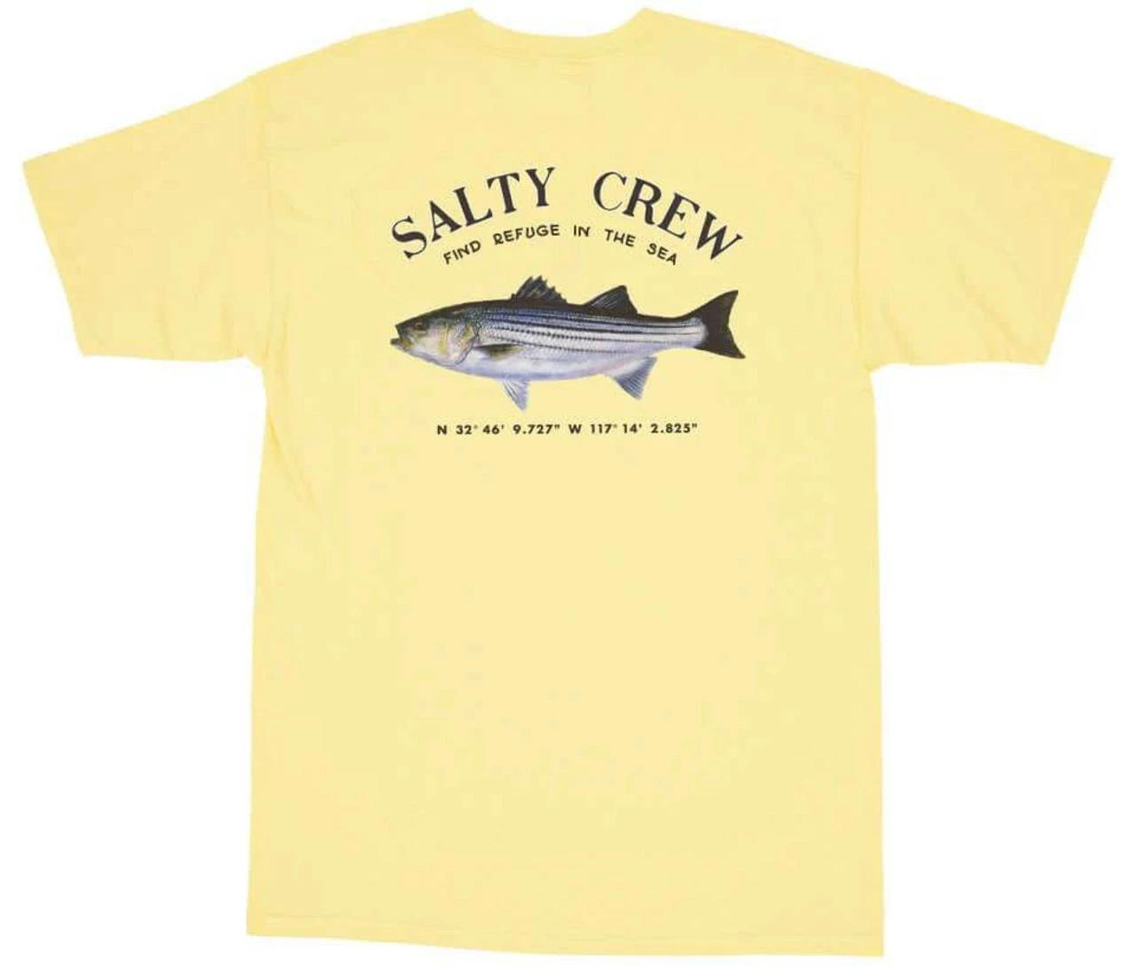 The Salty Crew Striper Standard Short Sleeve T-Shirt is a premium fit tee made with 100% cotton material. It features Salty Crew Striper Standard design across the back with smaller version on the front chest.